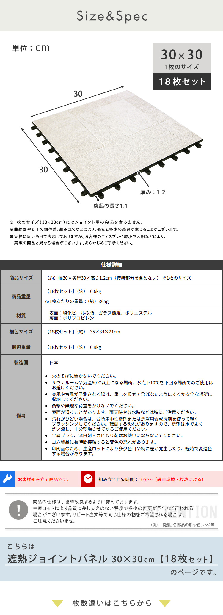 W30×D30×H1.2cm(接続部分含めない)