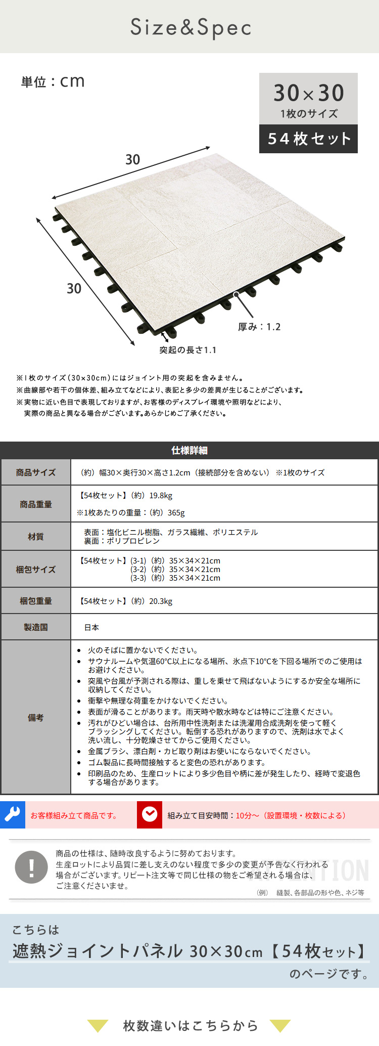 遮熱ジョイントパネル 30×30cm 54枚入り