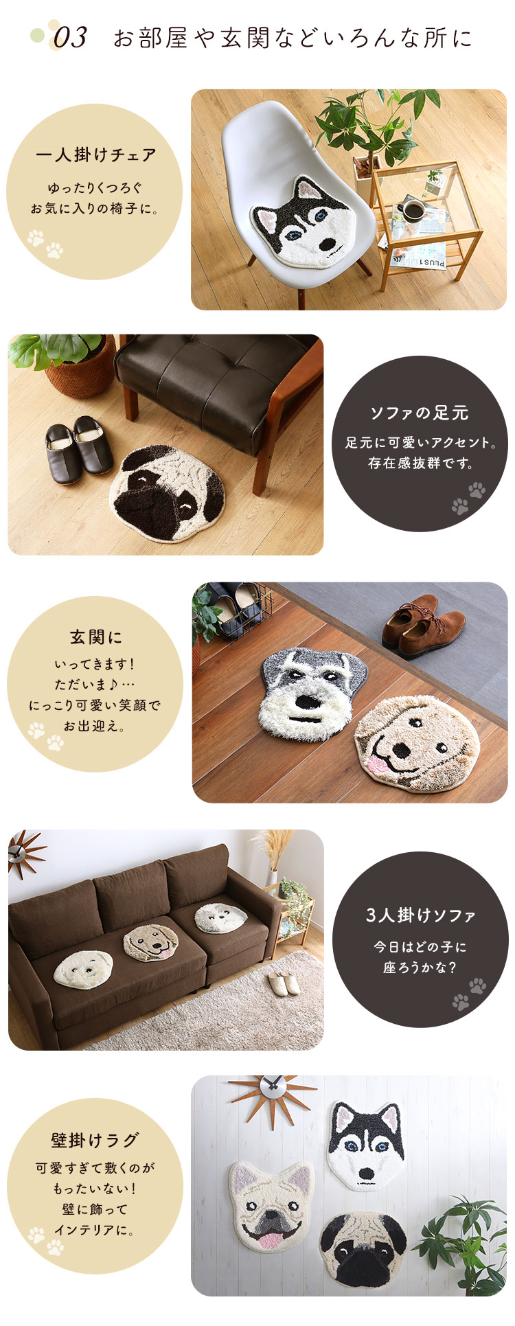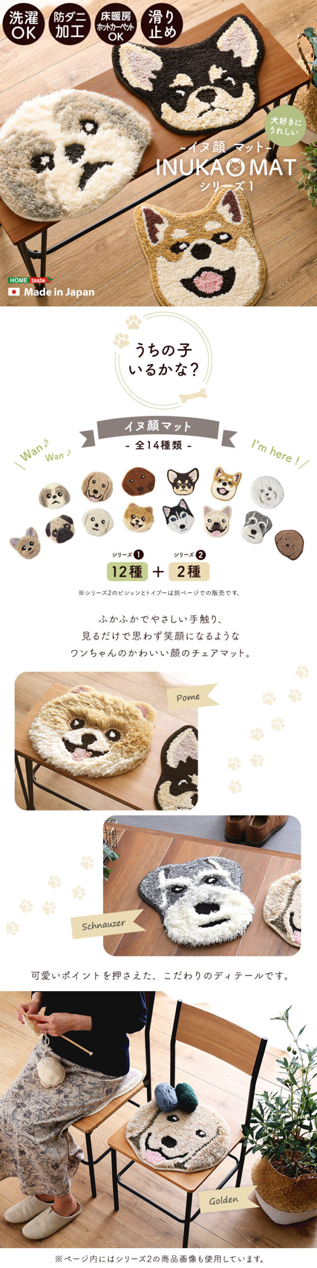 洗える イヌカオ チェアパッド