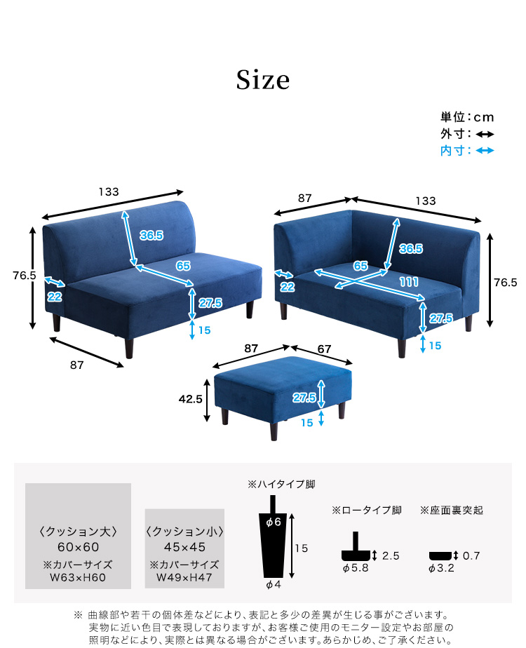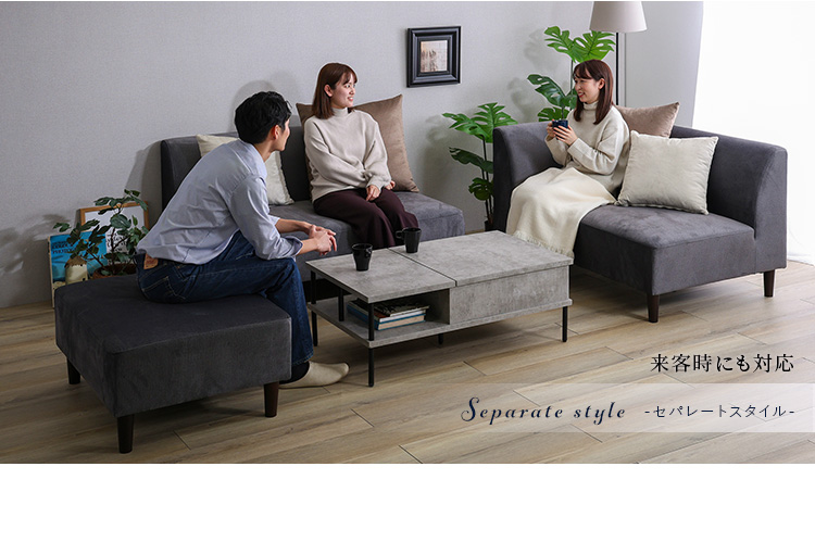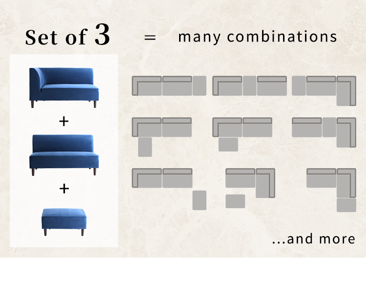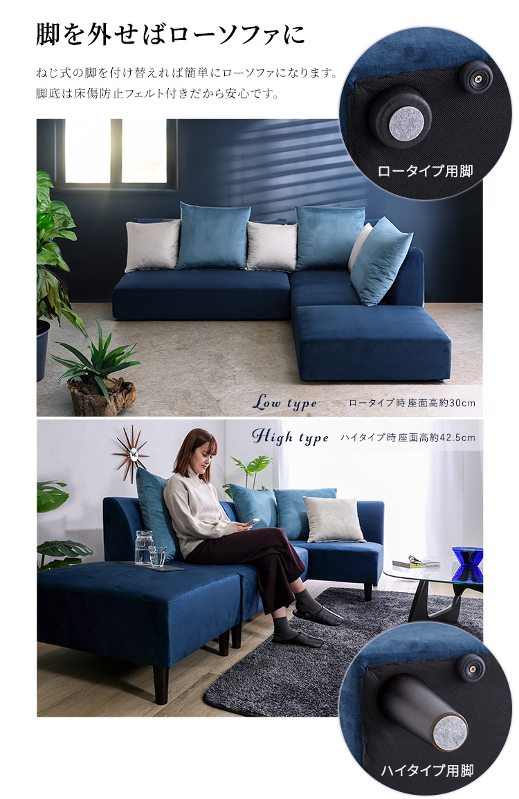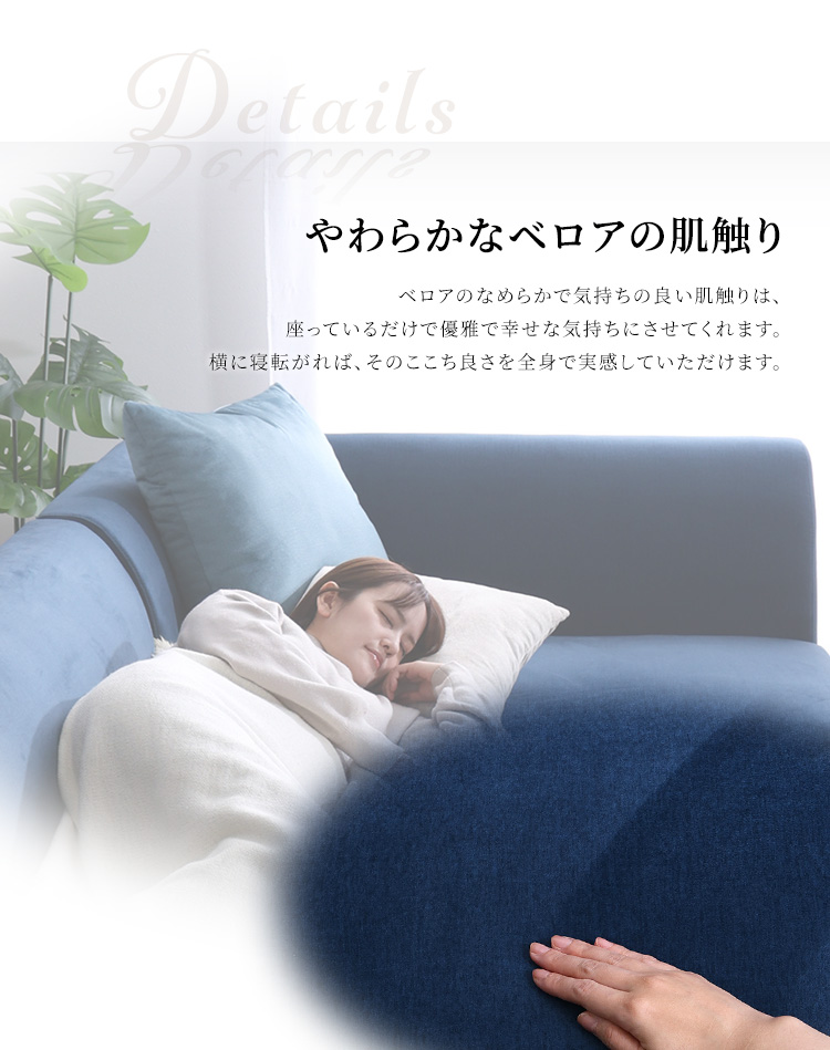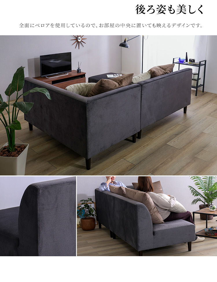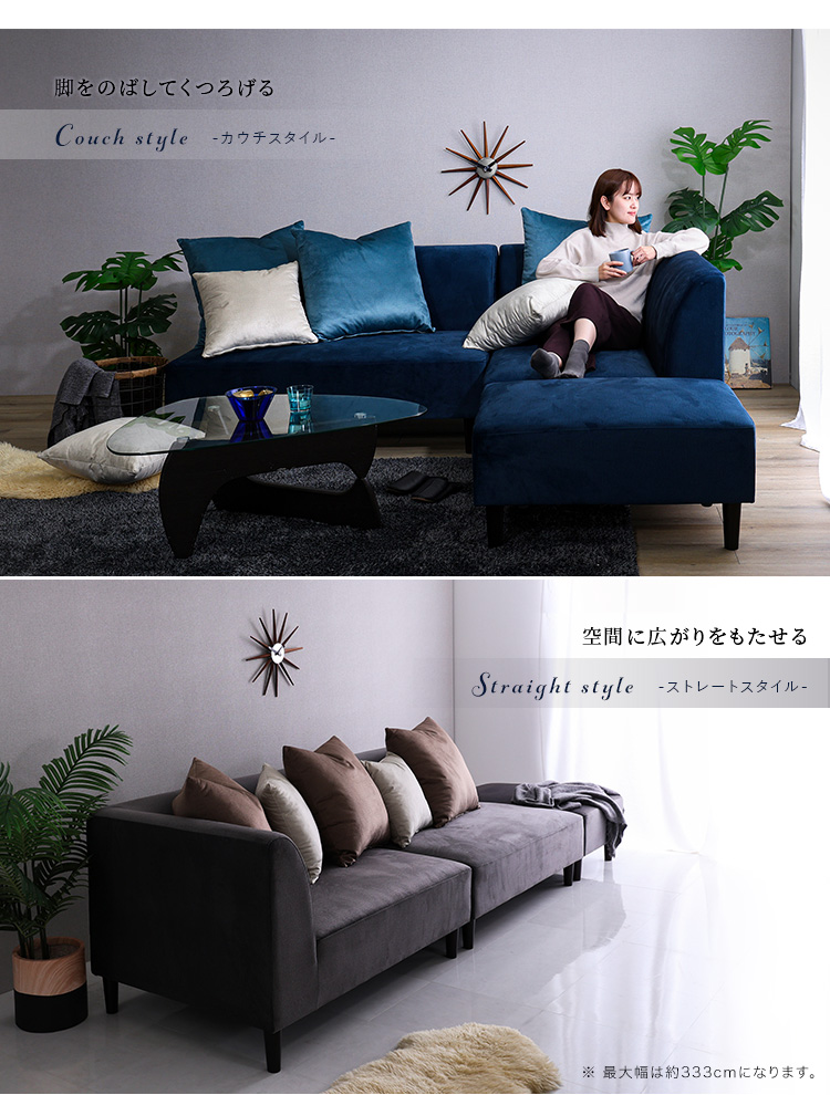 クッション付き 組み替え可能なベロアカウチソファ【VELUURI ベルーリ】
