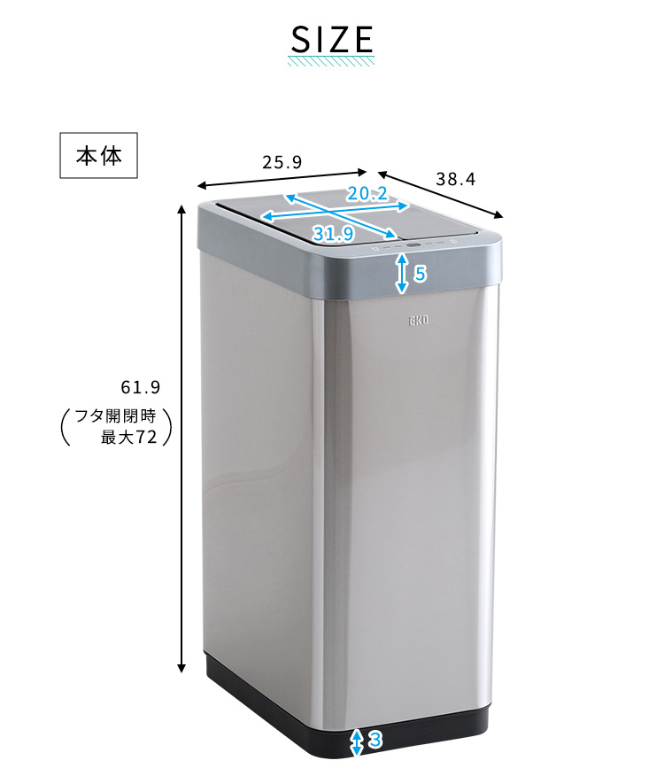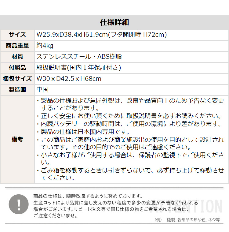 自動開閉ゴミ箱 電池 45L センサー ダストボックス