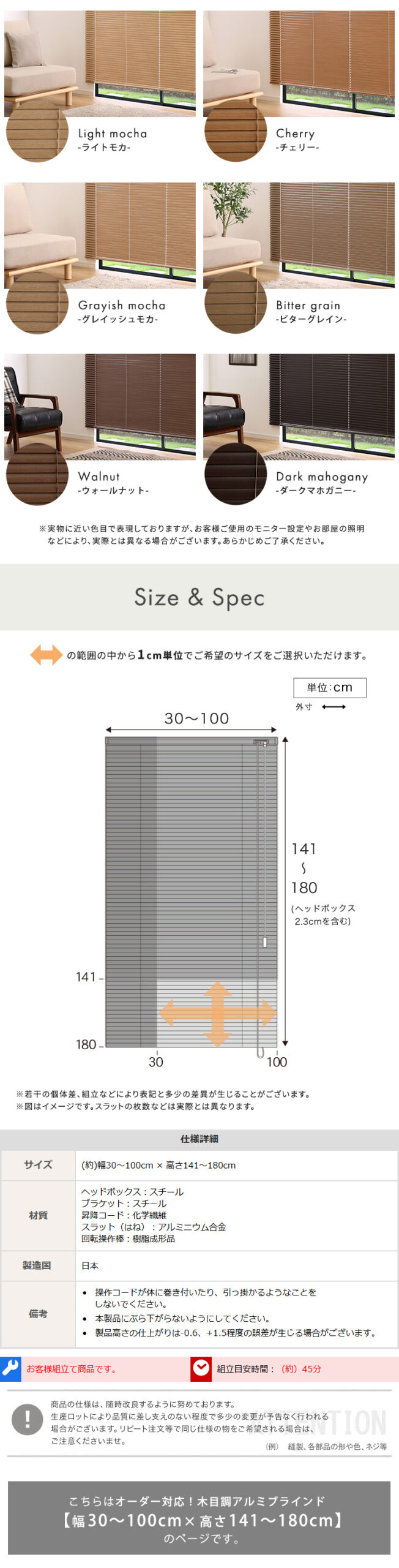 アッシュグレイン, ウォールナット, グレイッシュモカ, スカンジナビアン, ダークマホガニー, チェリー, ナチュラルグレイン, ビターグレイン, ホワイトグレイン, ライトモカ