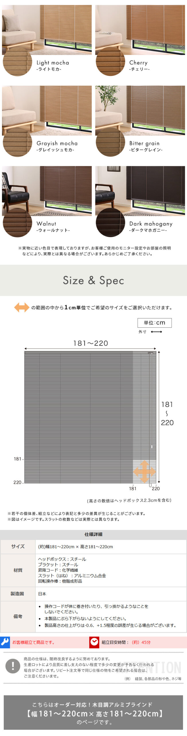 アッシュグレイン, ウォールナット, グレイッシュモカ, スカンジナビアン, ダークマホガニー, チェリー, ナチュラルグレイン, ビターグレイン, ホワイトグレイン, ライトモカ