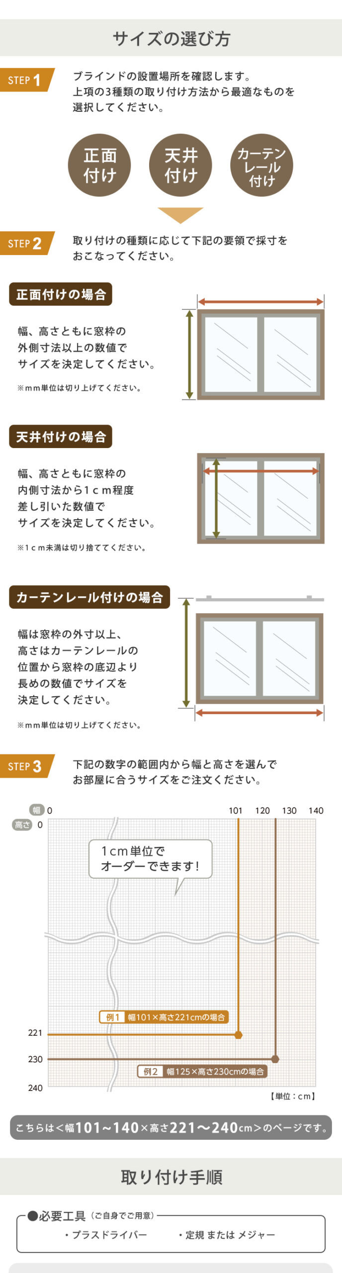 1cm単位のオーダー対応! 木目調アルミブラインド 幅101~140cm×高さ221~240cm