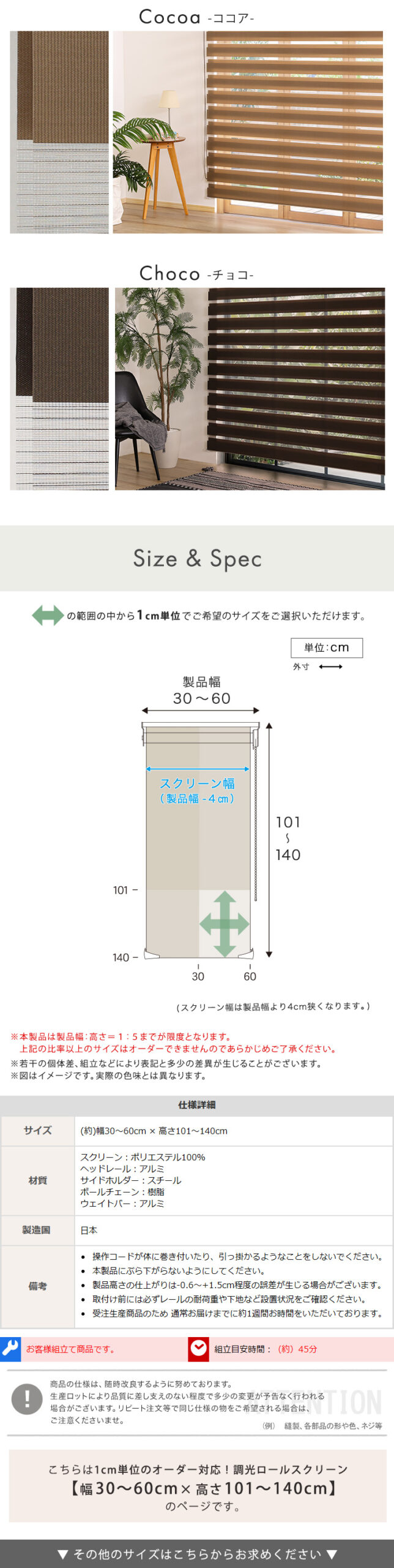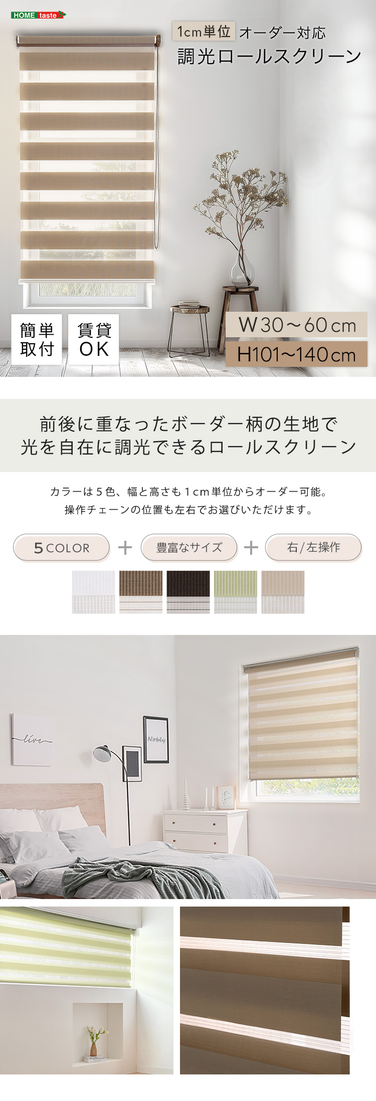 1cm単位のオーダー対応! 調光ロールスクリーン 幅30~60cm×高さ101~140cm