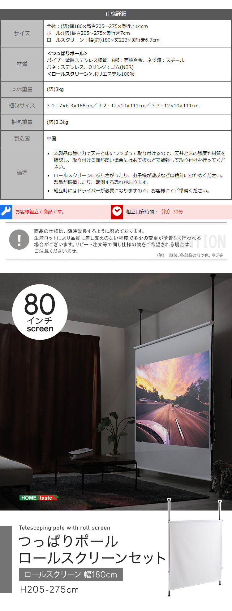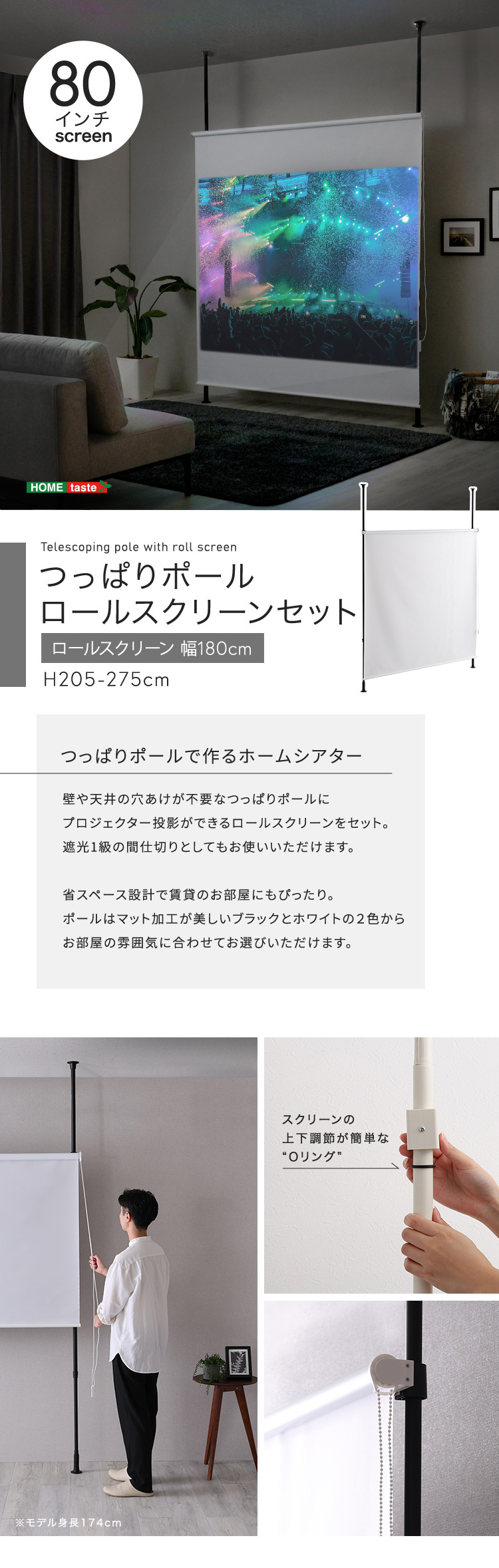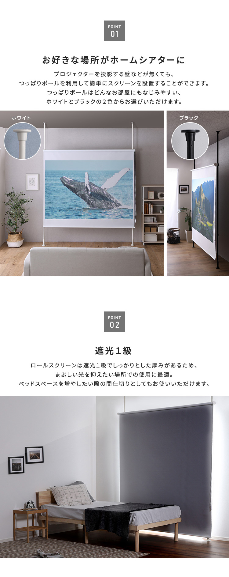 つっぱり棒 突っ張 スクリーン プロジェクター