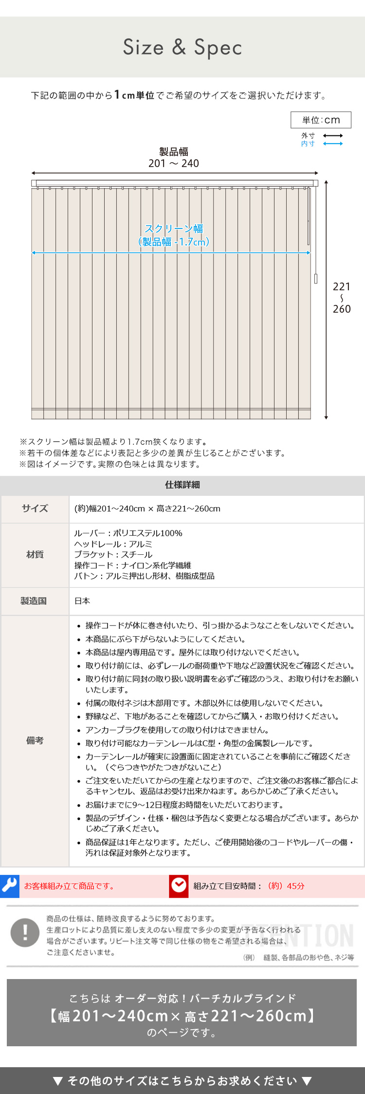 1cm単位のオーダー対応!バーチカルブラインド 幅201~240cm×高さ221~260cm