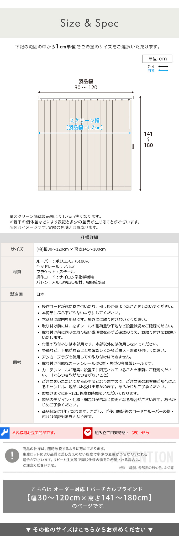1cm単位のオーダー対応!バーチカルブラインド 幅30~120cm×高さ141~180cm