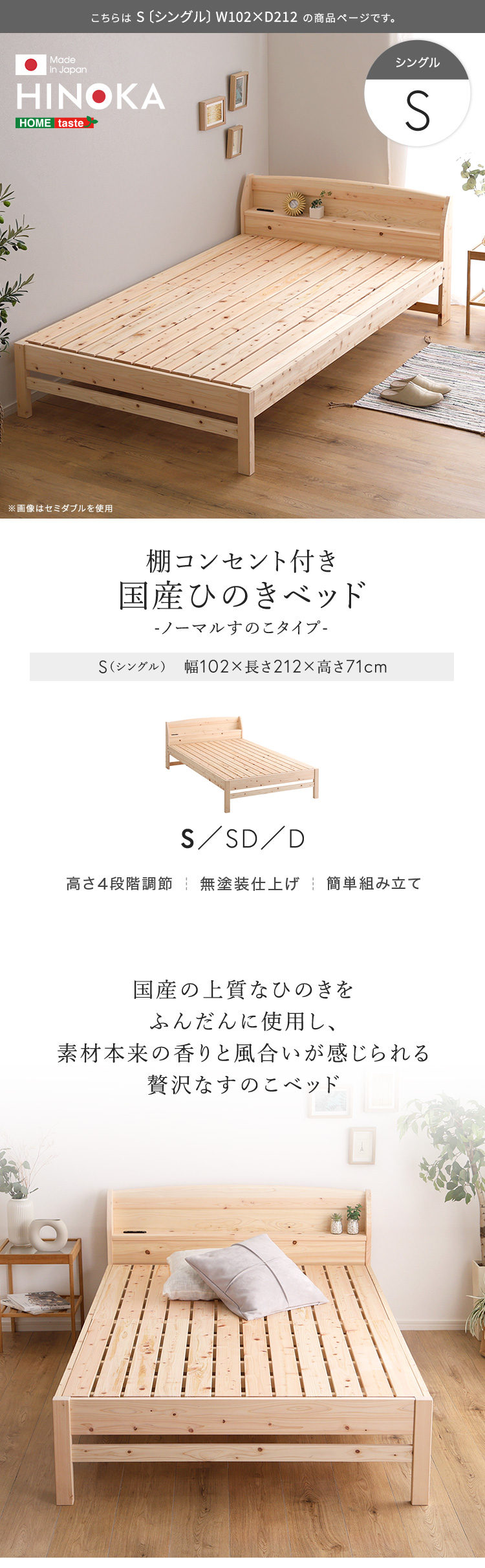 ヒノキベッド シングル 日本製