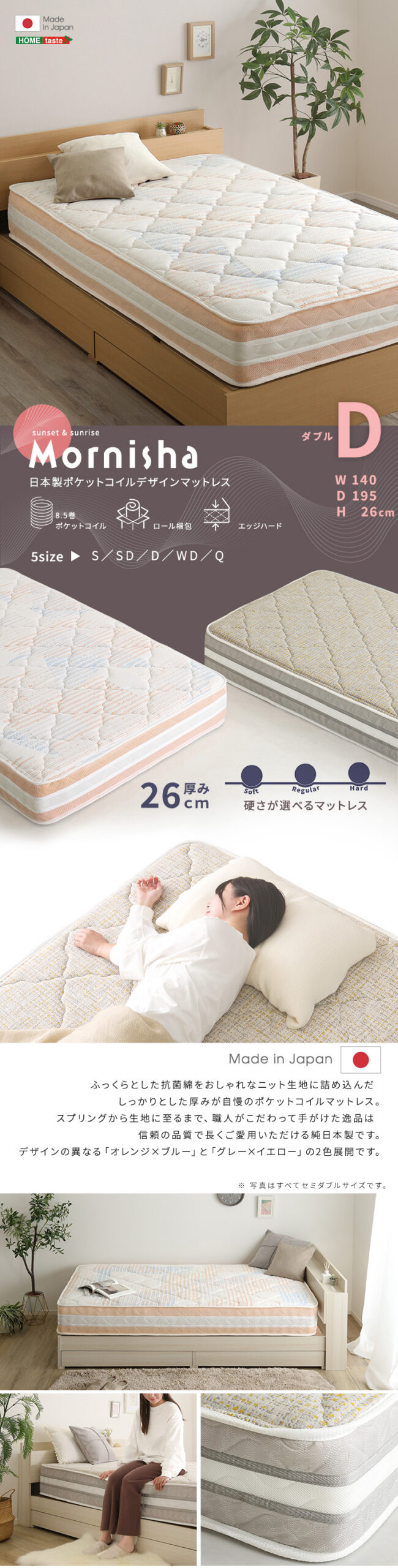 日本製ポケットコイルデザインマットレス【mornisha-モニーシャ-】(ダブル)