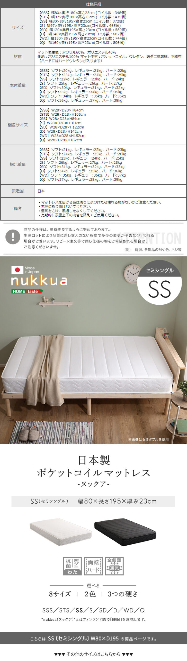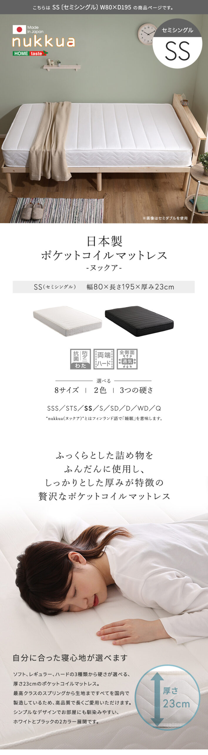日本製ポケットコイルマットレス【nukkua-ヌックア-】(セミシングル)