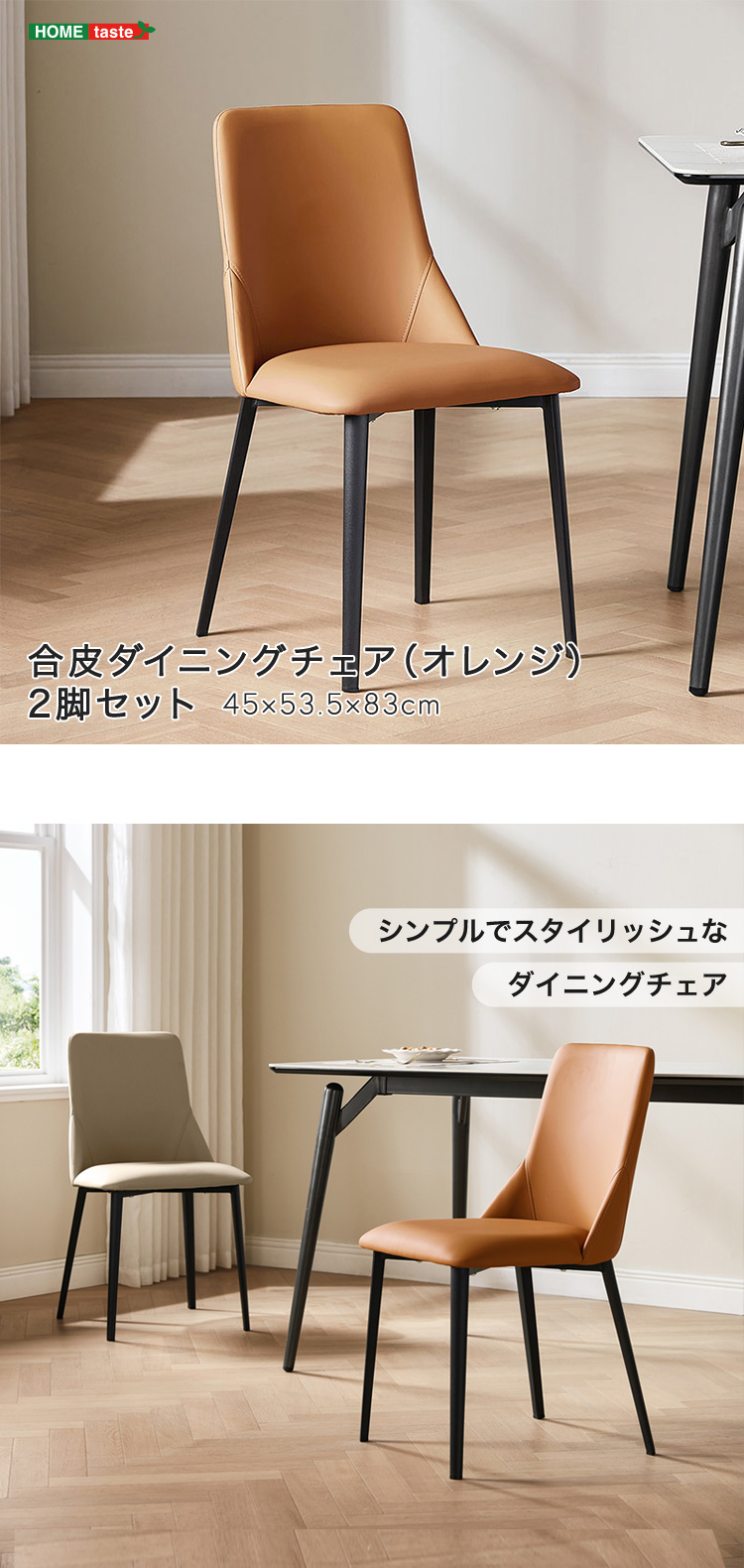 合皮ダイニングチェア(オレンジ) 2脚セット