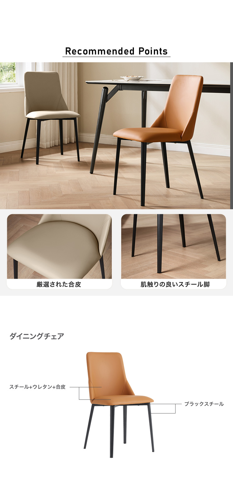 ダイニングチェア 2脚セット 合皮 スチール