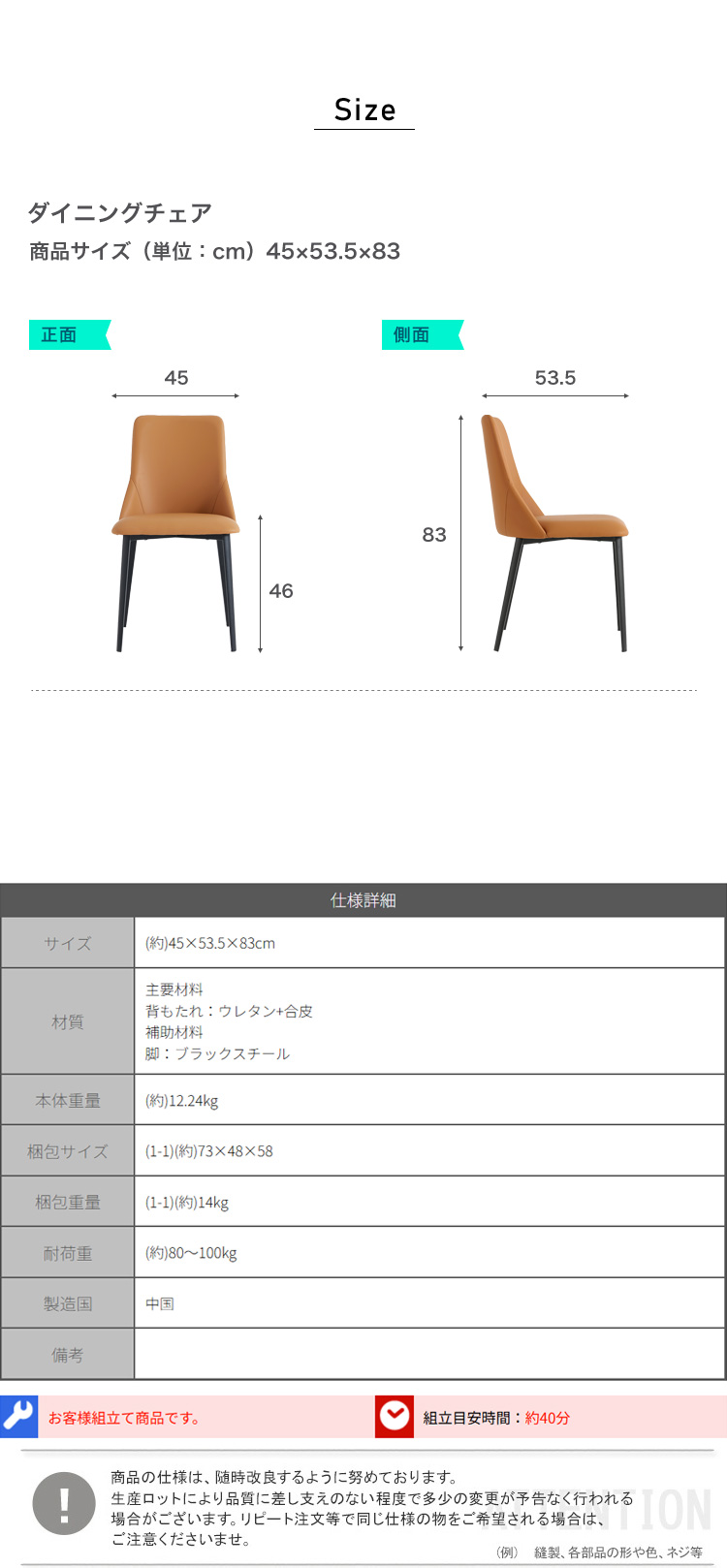 “合皮ダイニングチェア(オレンジ) 2脚セット” の口コミを投稿します