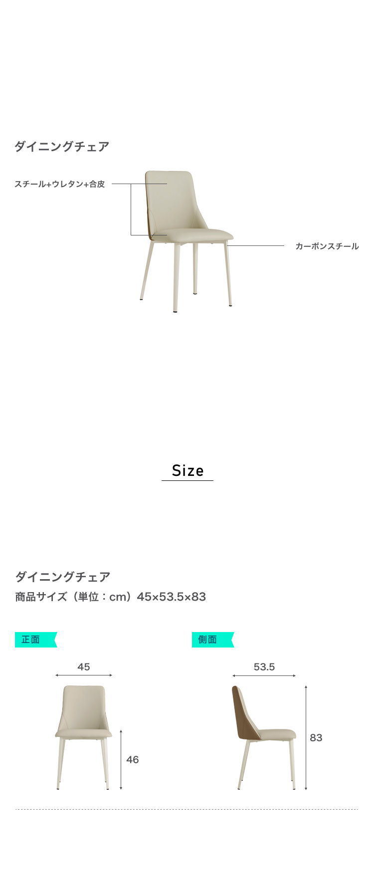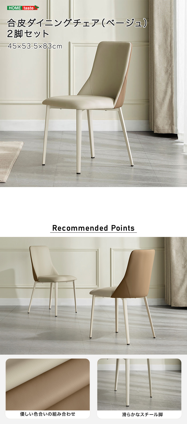 合皮ダイニングチェア(ベージュ) 2脚セット
