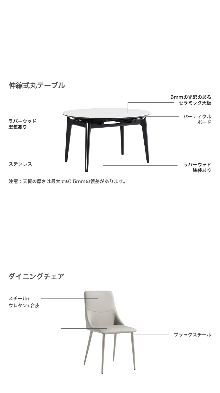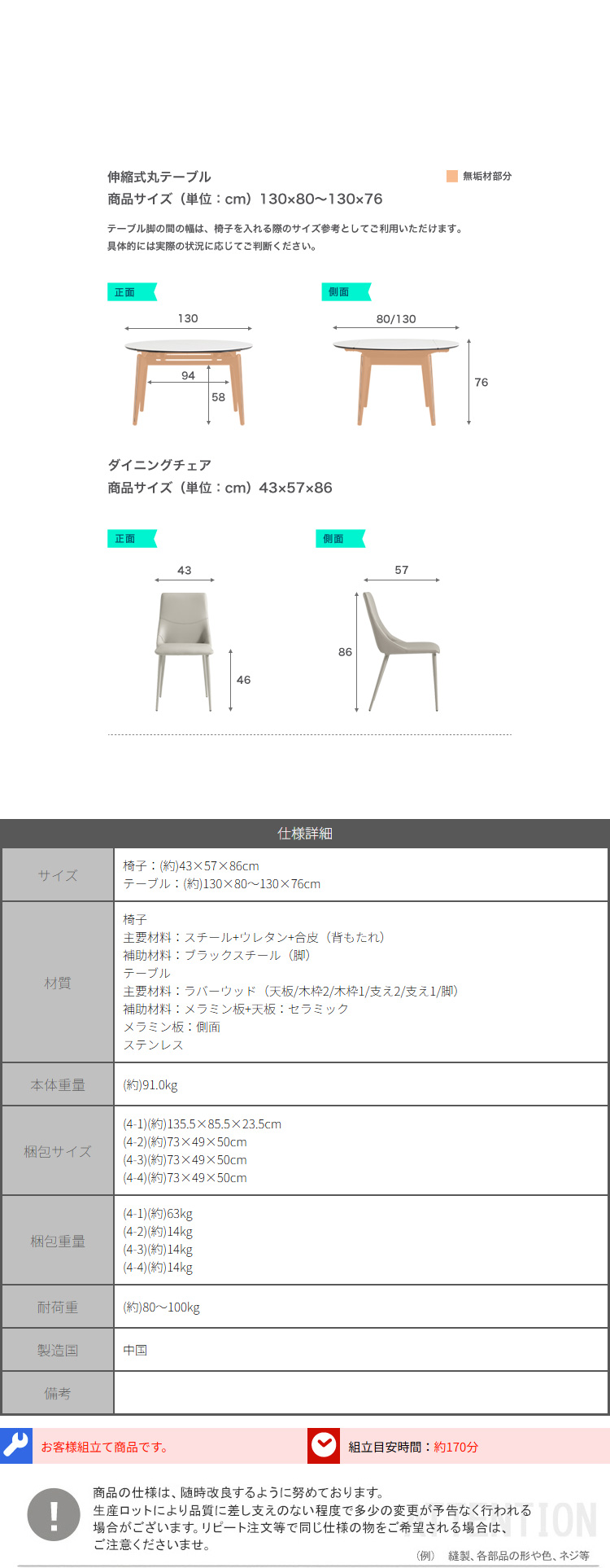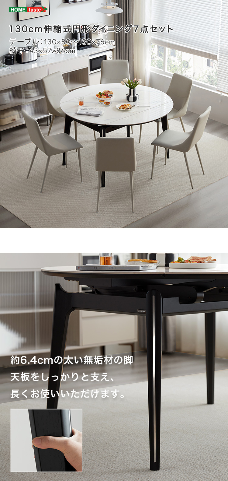 “130cm 伸縮式円形ダイニング 7点セット” の口コミを投稿します
