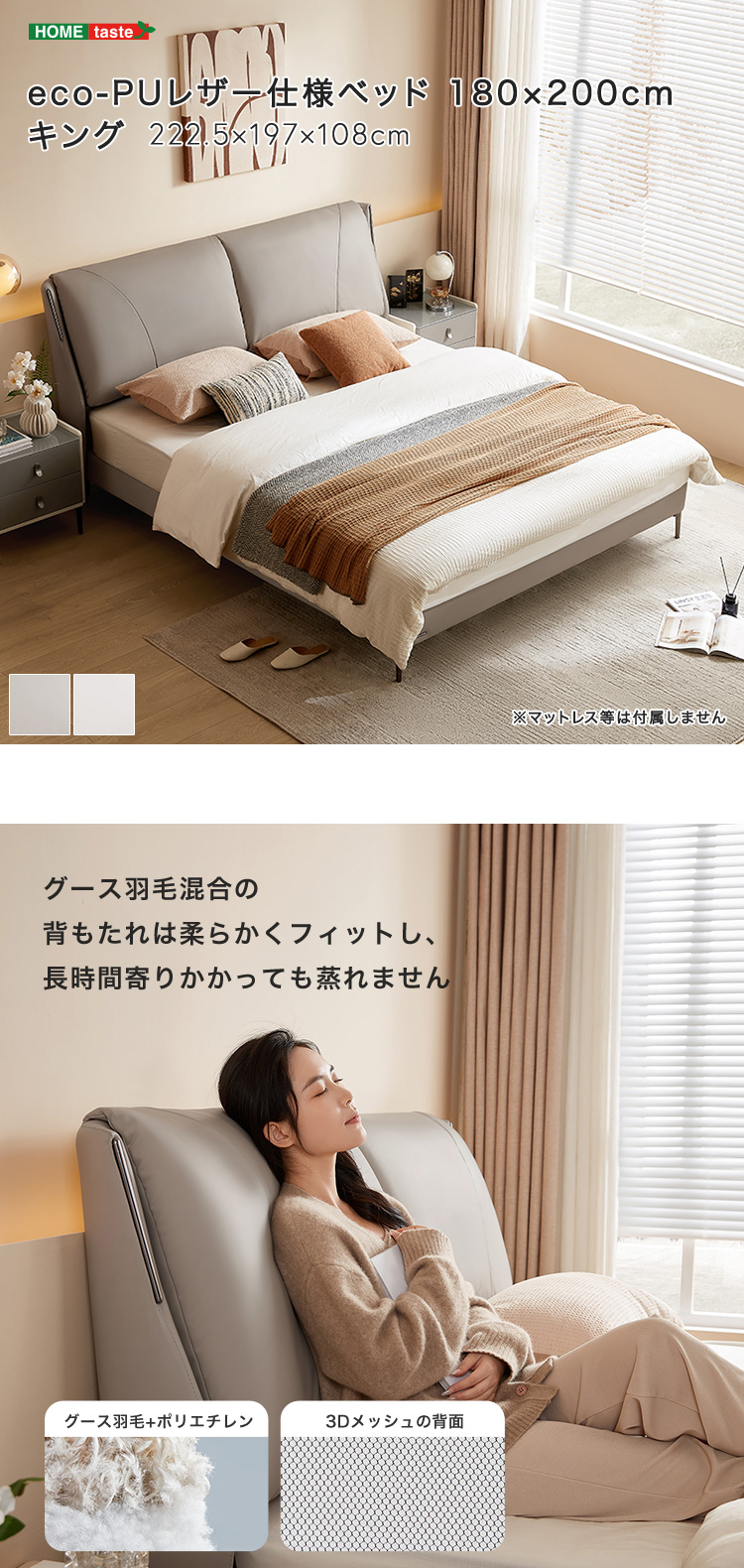 ベッド 180×200cm eco-pu(PUレザー) 耐摩耗性 抗菌