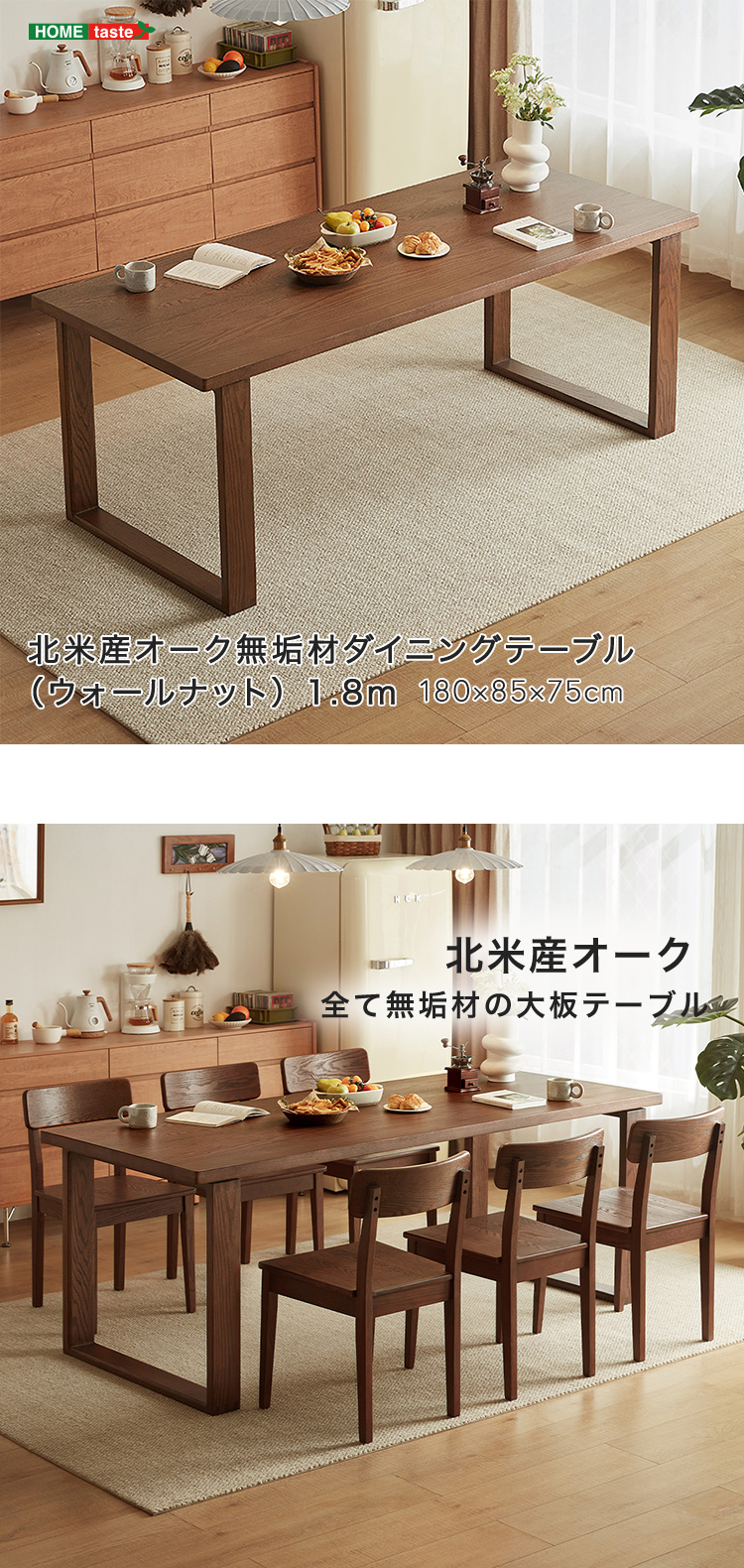 北米産オーク無垢材ダイニングテーブル(ウォールナット) 1.8m