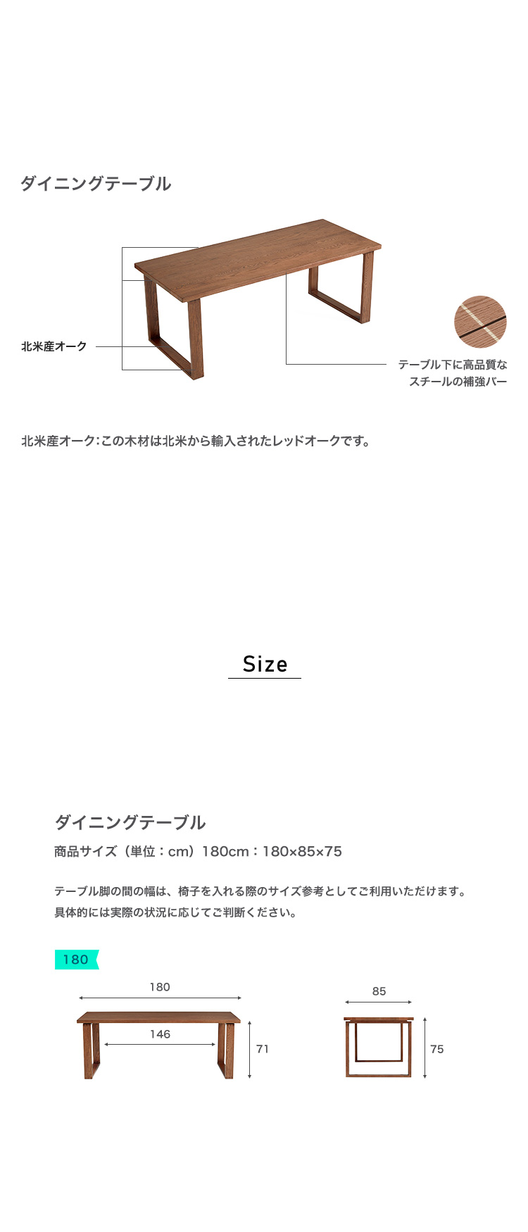 ダイニングテーブル 無垢材 北米産オーク