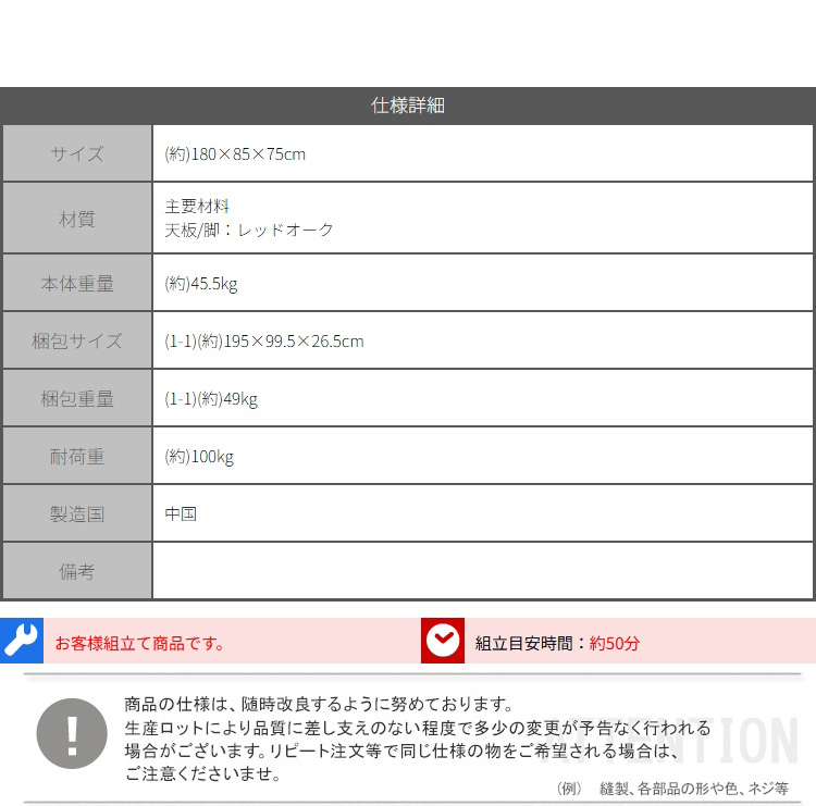 “北米産オーク無垢材ダイニングテーブル(ウォールナット) 1.8m” の口コミを投稿します
