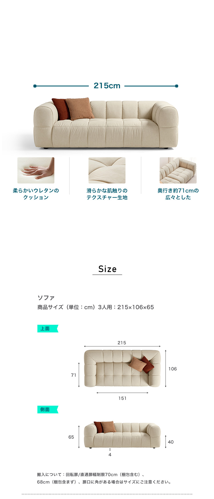 “滑らかテクスチャー3人掛けカウチソファ” の口コミを投稿します