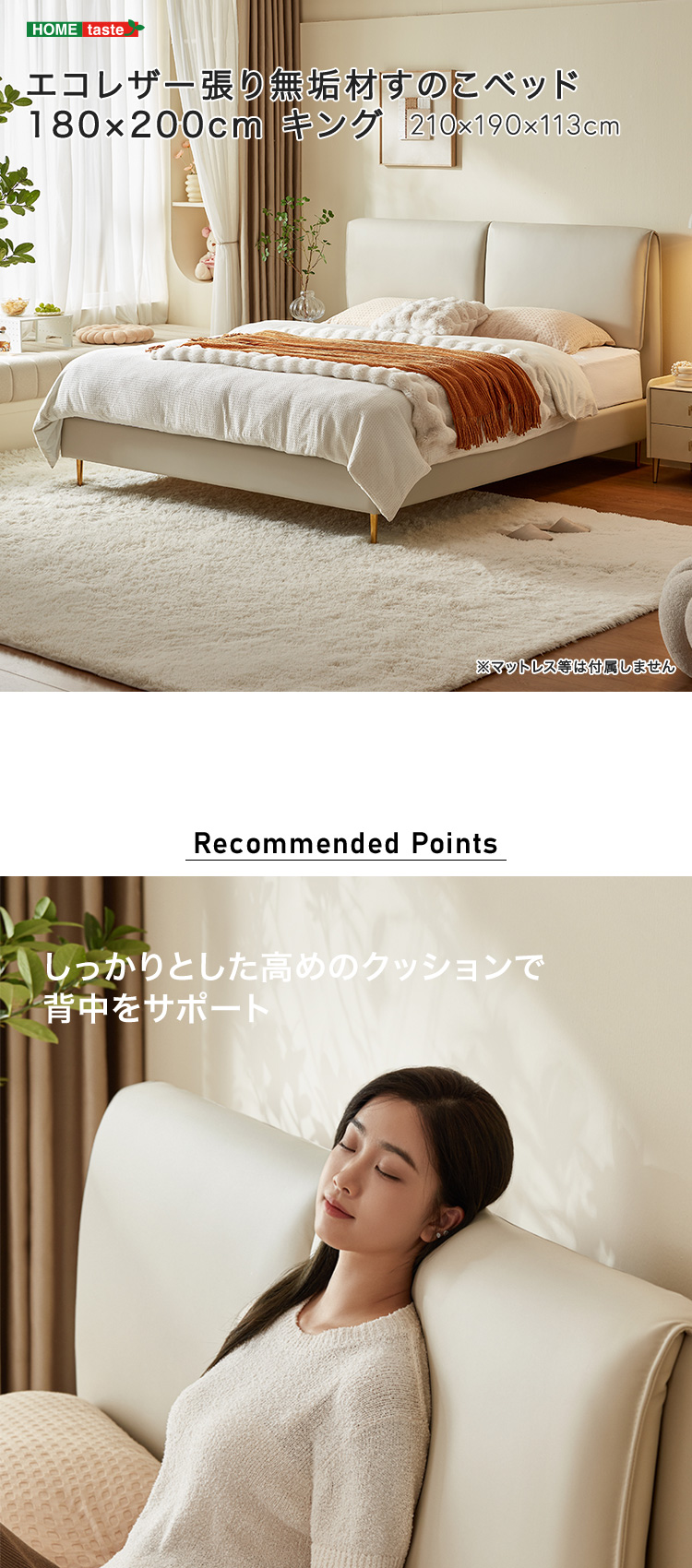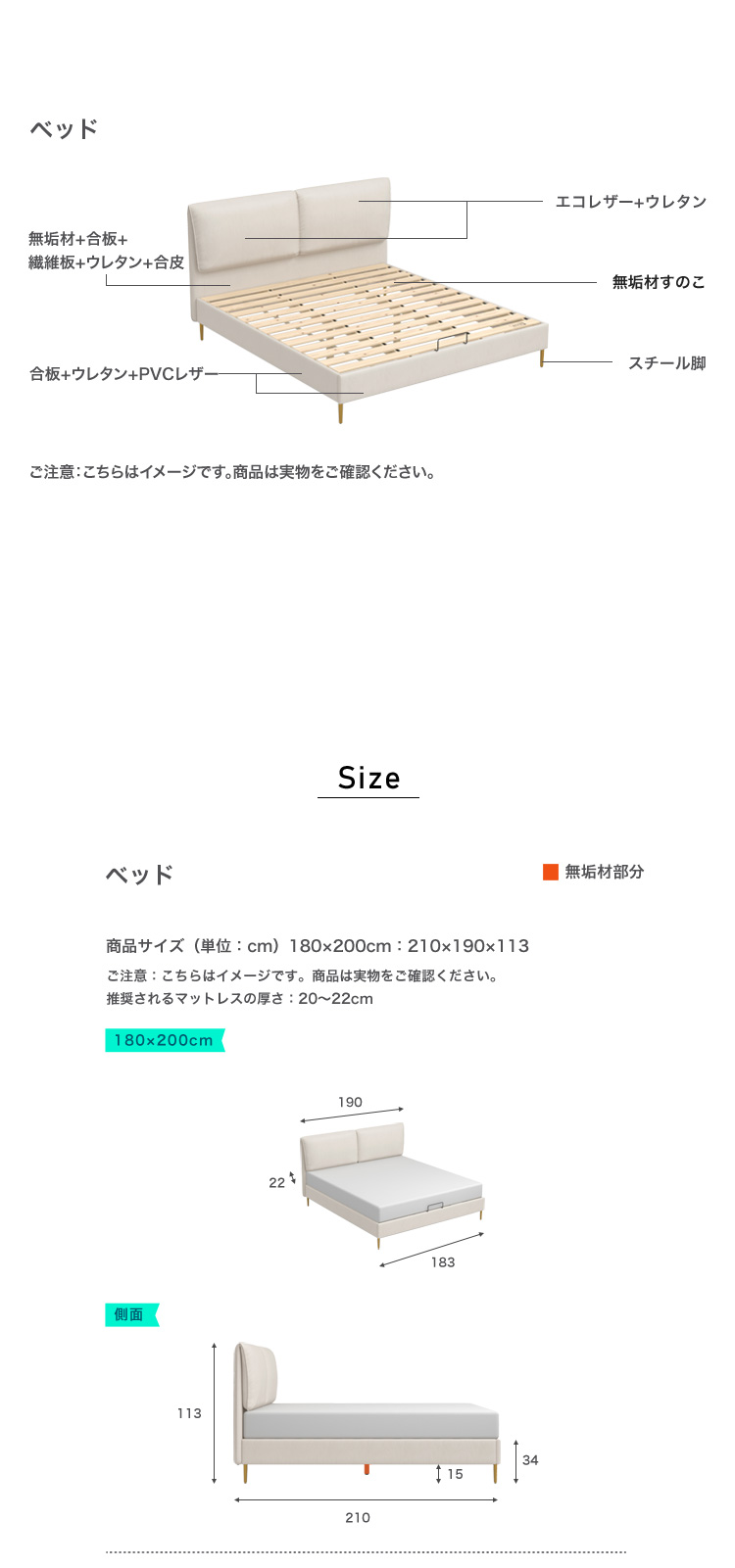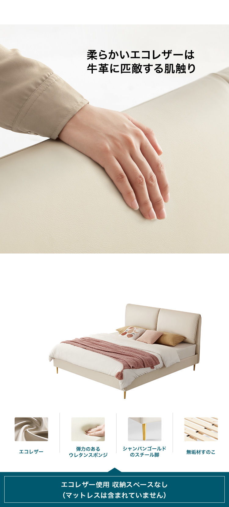 ベッド 180×200cm エコレザー 無垢材すのこ