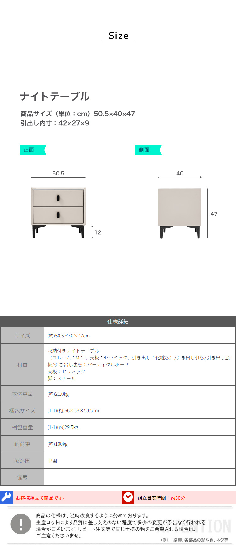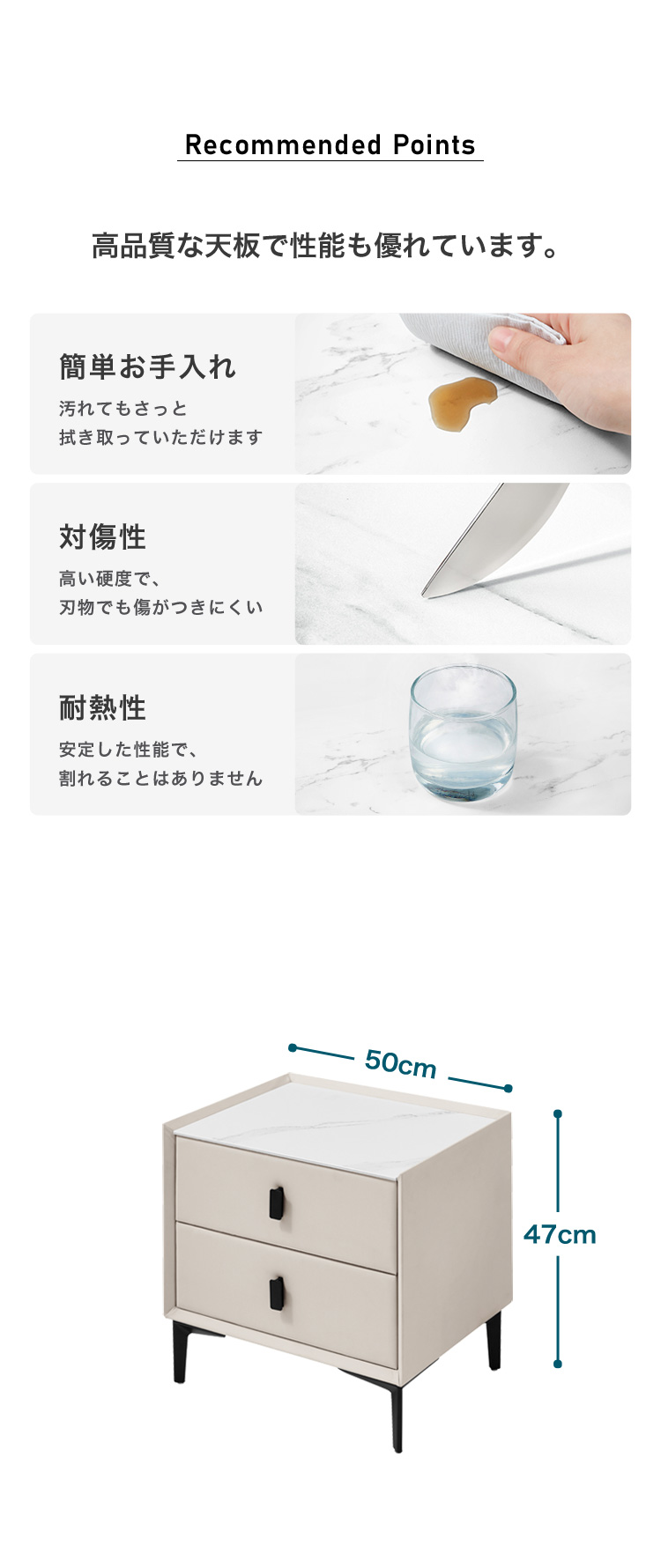 ナイトテーブル セラミック天板 傷に強い 高温耐性