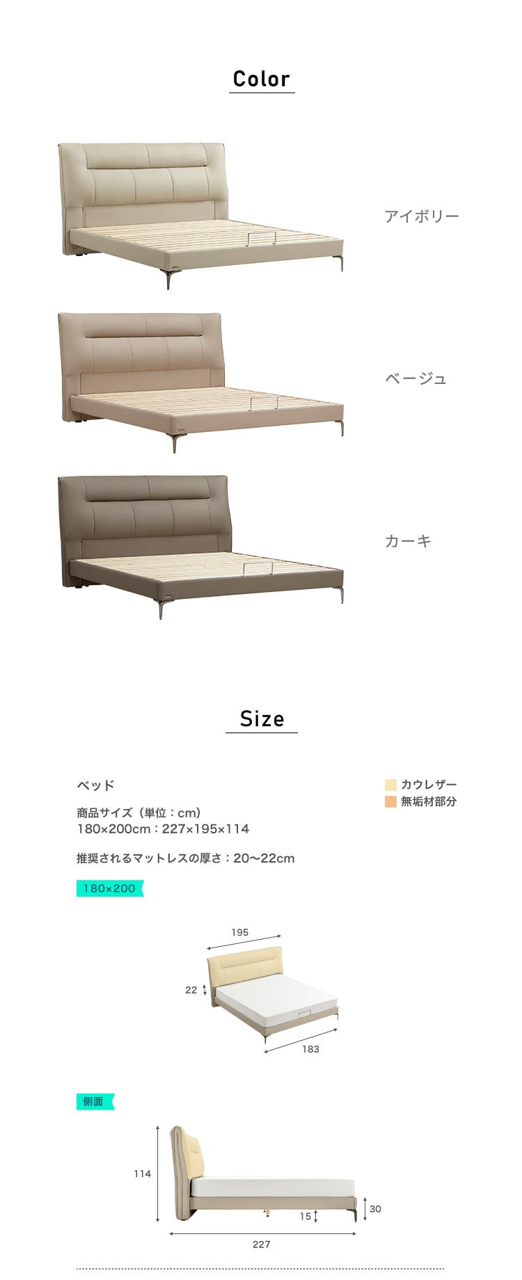 カウレザー ベッド 180×200cm 本革