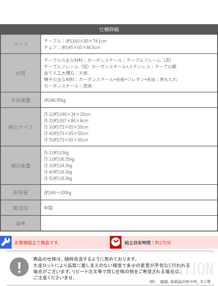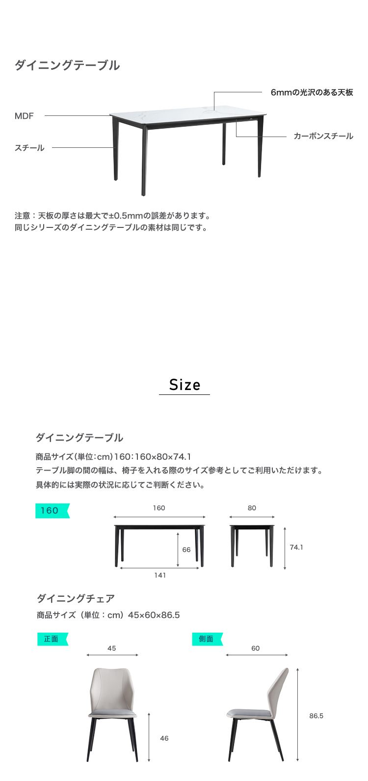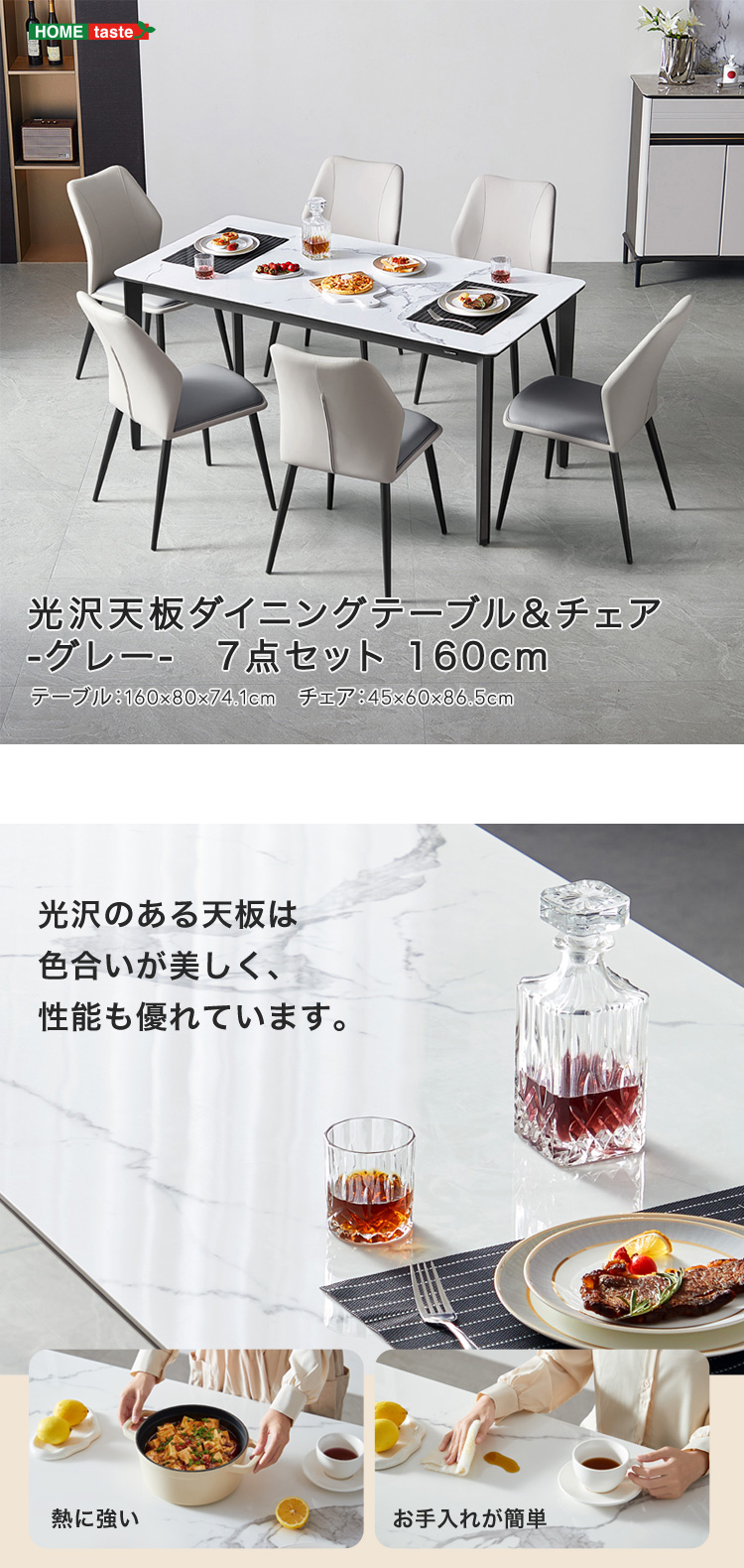 光沢天板 ダイニングテーブル 7点セット 160cm