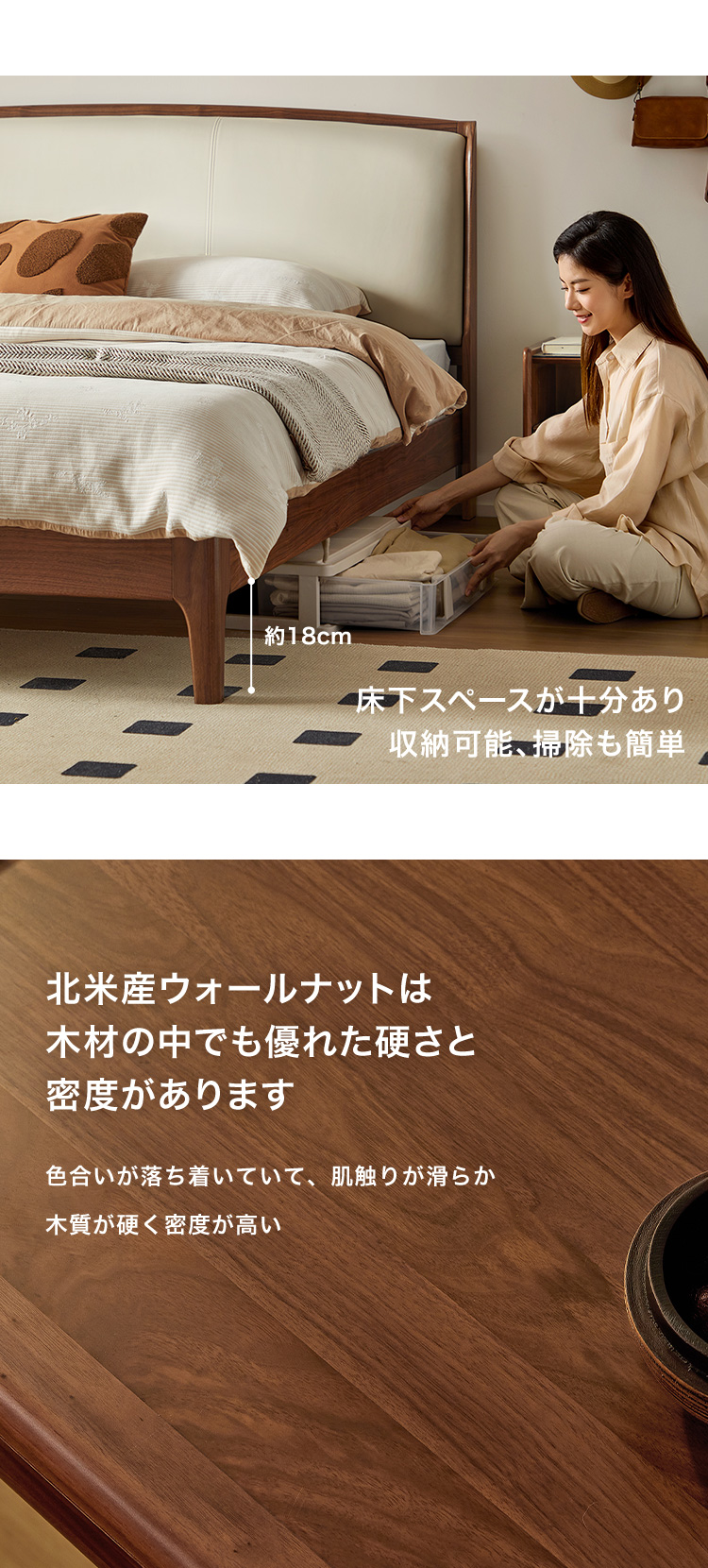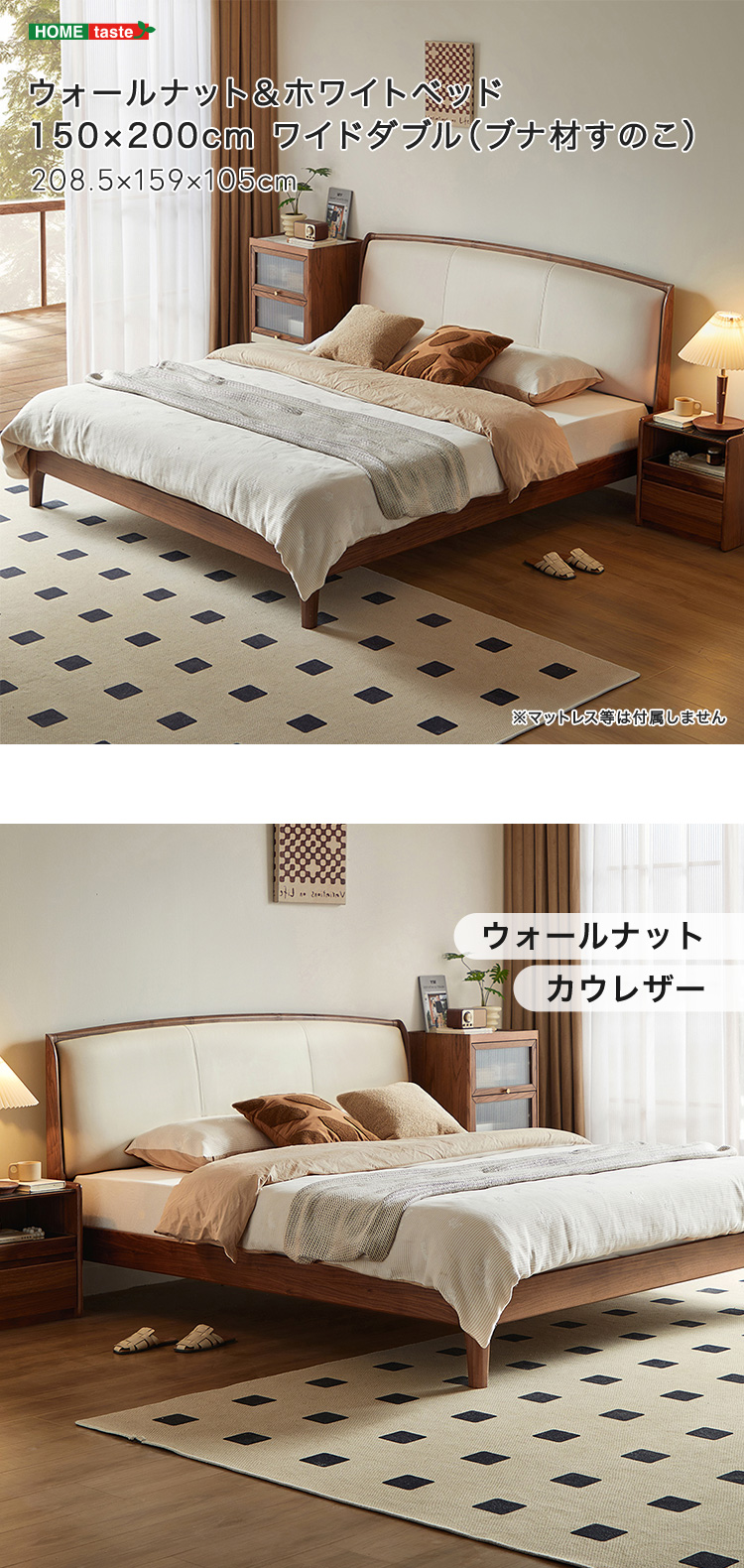 ウォールナット&ホワイトベッド 150×200cm ワイドダブル(ブナ材すのこ)