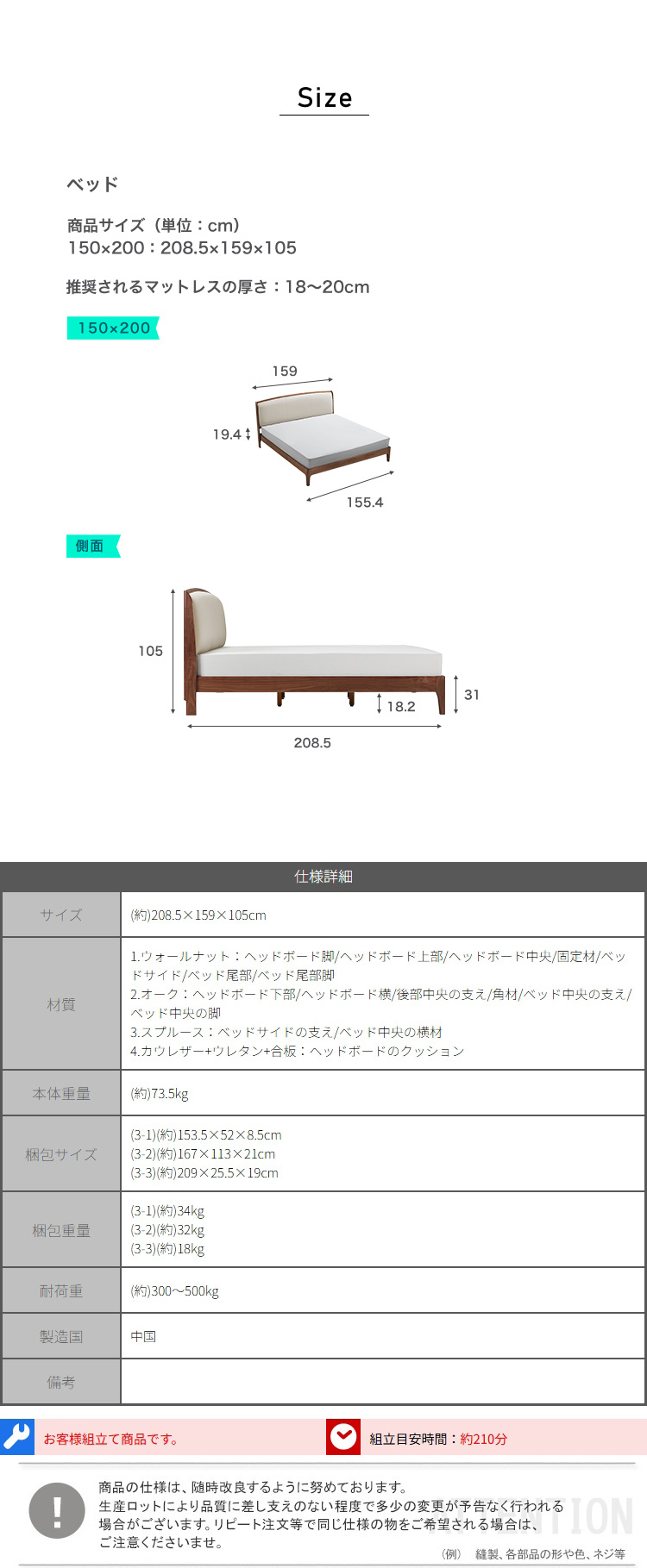ベッド 150×200cm ウォールナット