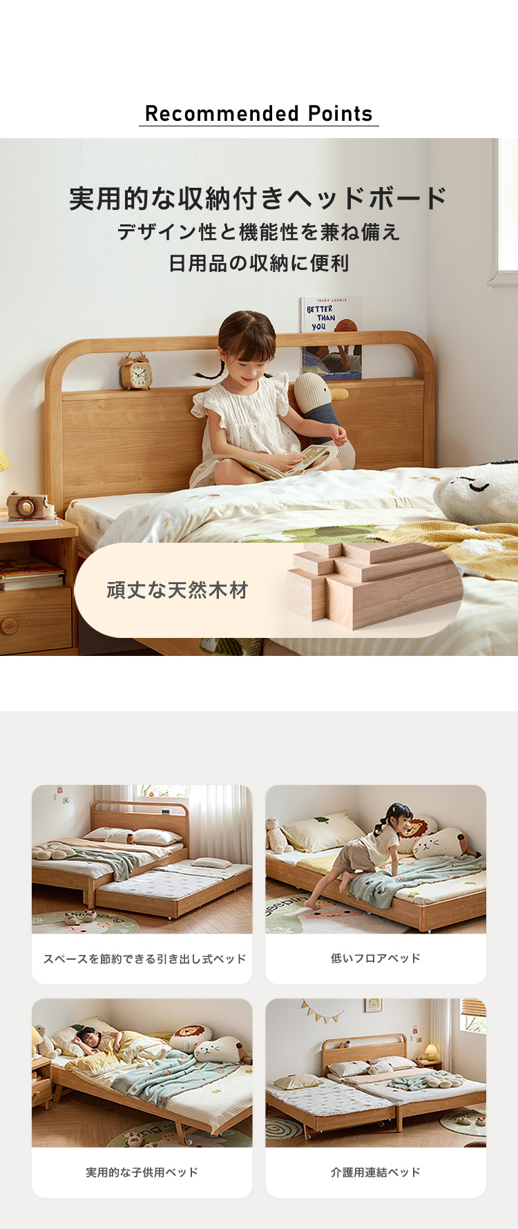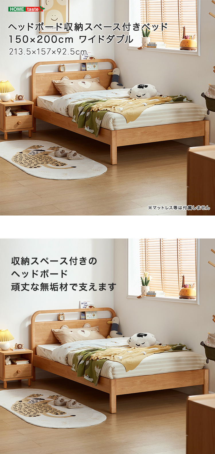 ヘッドボード収納スペース付きベッド 150×200cm ワイドダブル