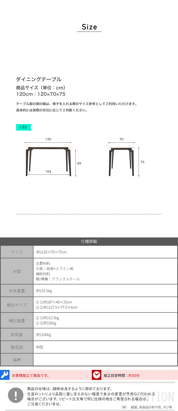 “セラミック天板ダイニングテーブル 120cm” の口コミを投稿します