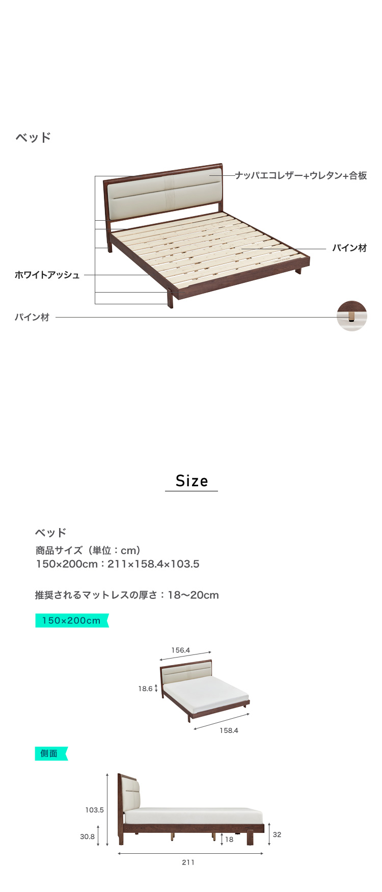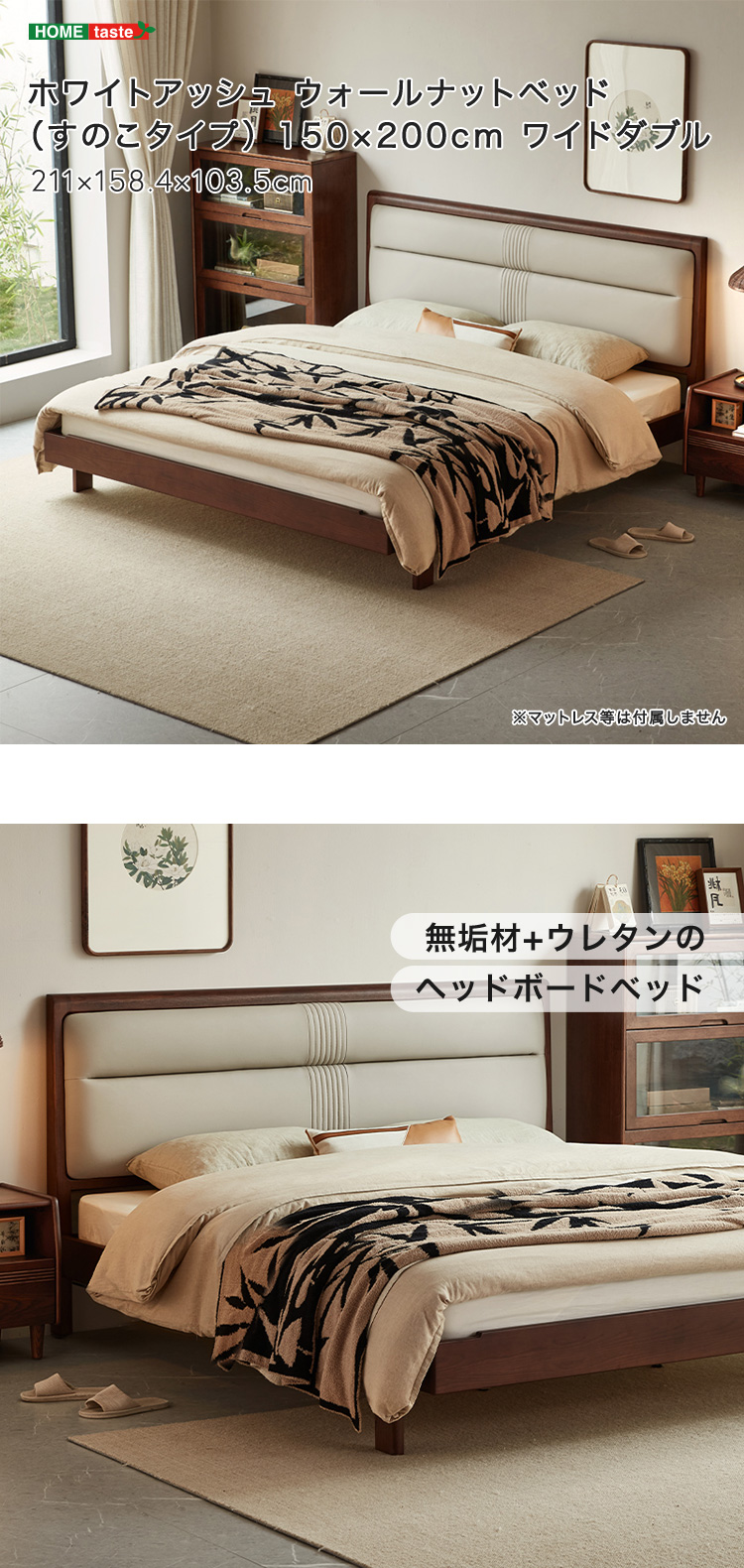 “ホワイトアッシュ ウォールナットベッド(すのこタイプ) 150×200cm ワイドダブル” の口コミを投稿します