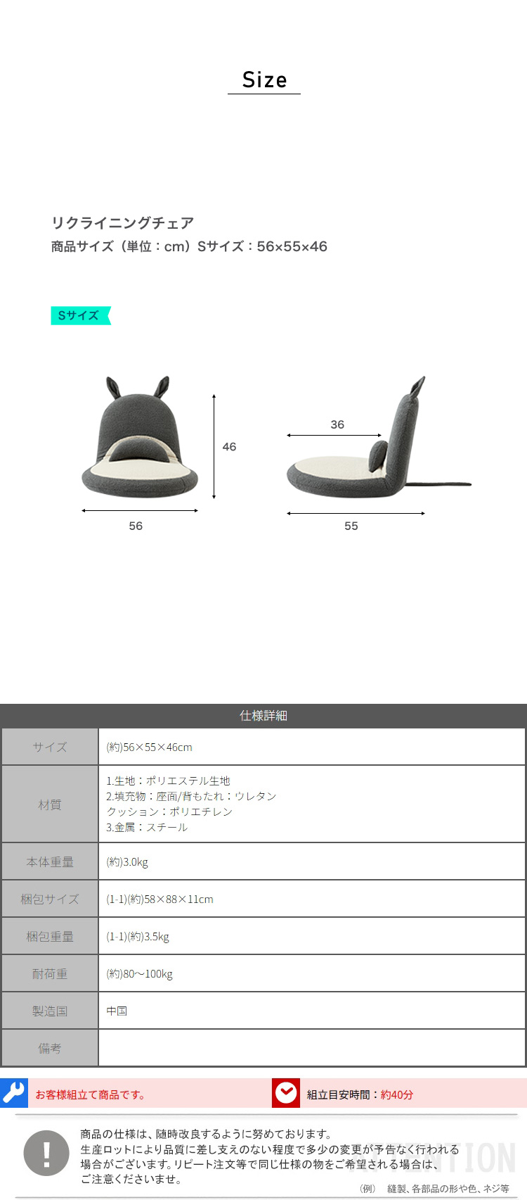 リクライニングチェア 小型 6段階調節