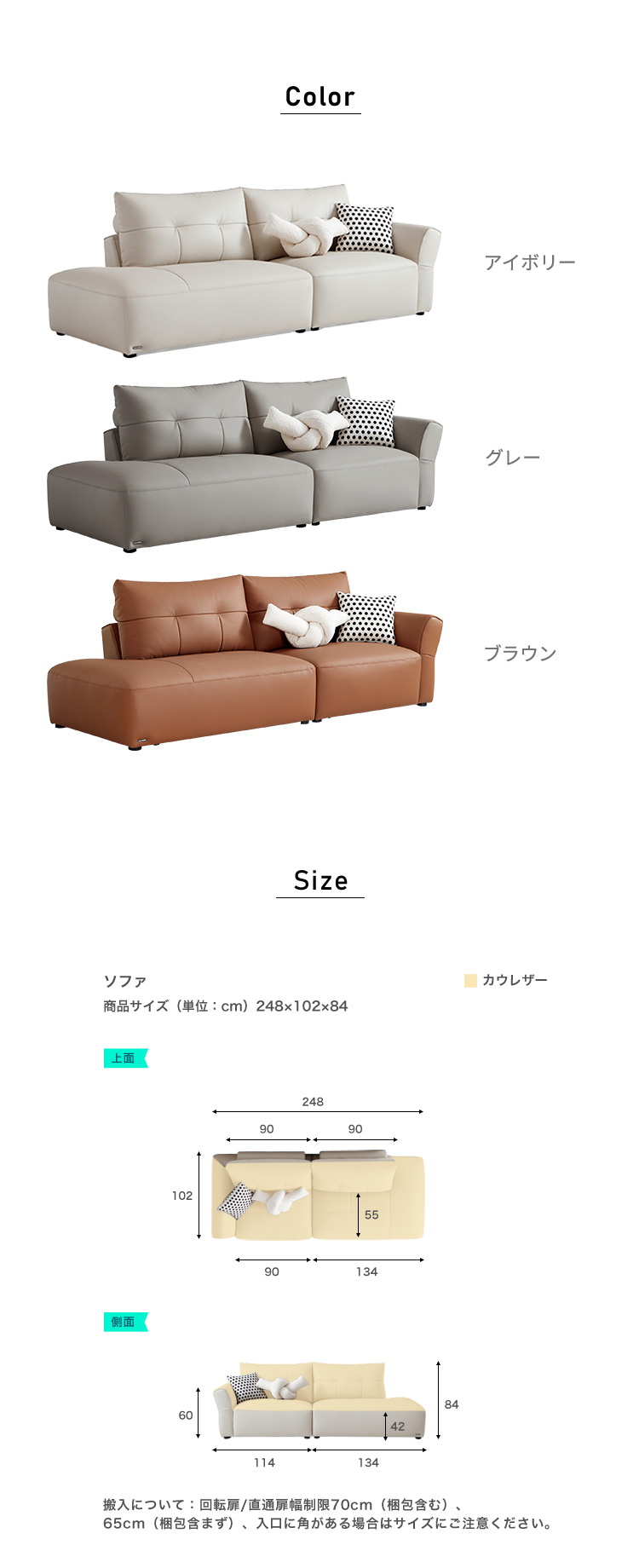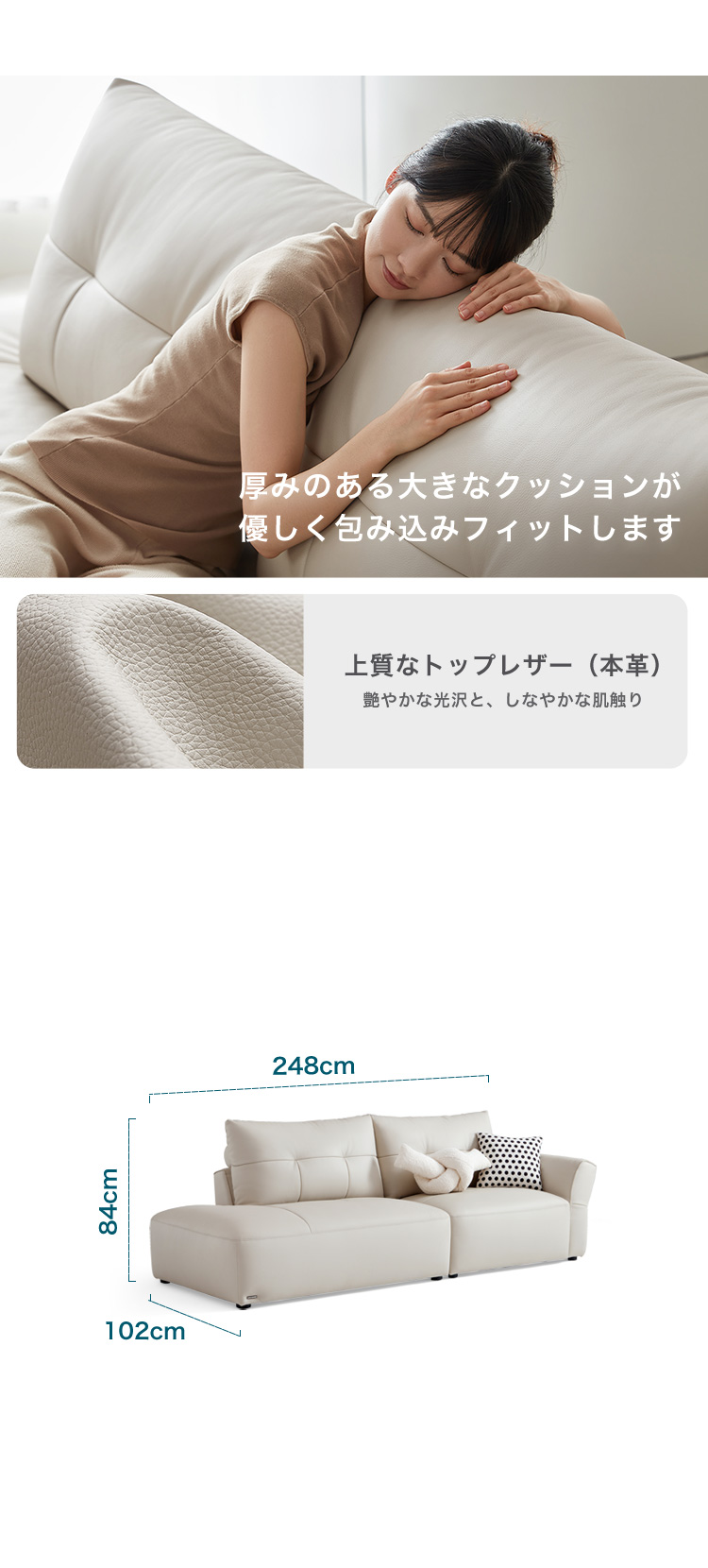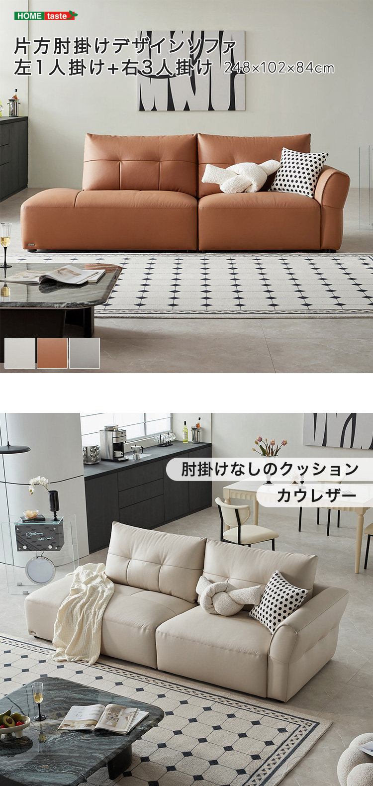 本革 カウレザー ソファ 248cm 左1人掛け