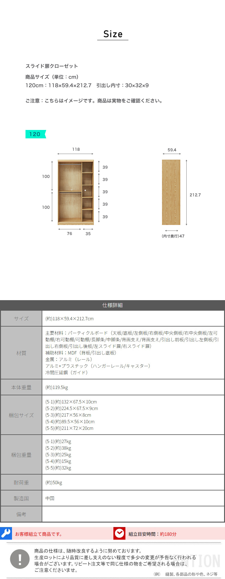 スライド扉クローゼット 120cm