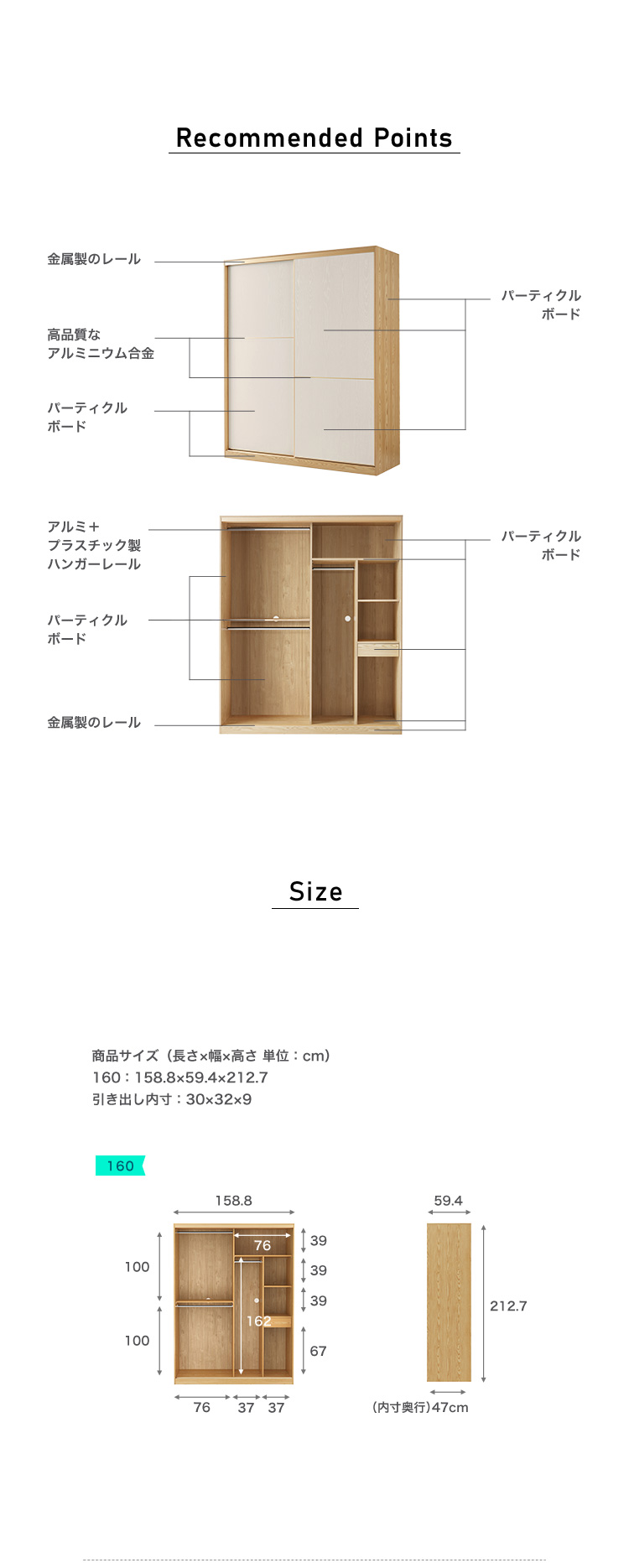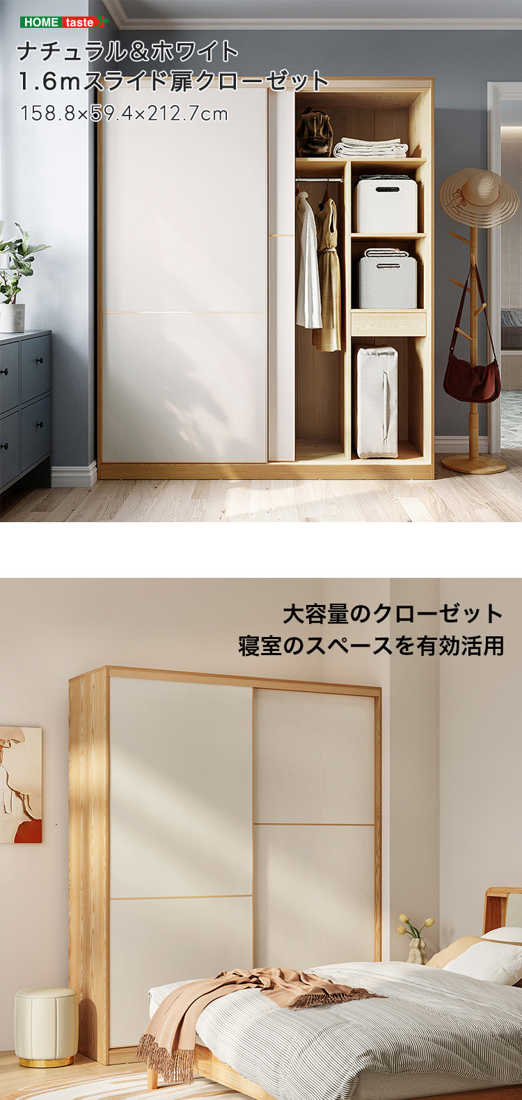 スライド扉クローゼット 1.6m 大容量 おしゃれ