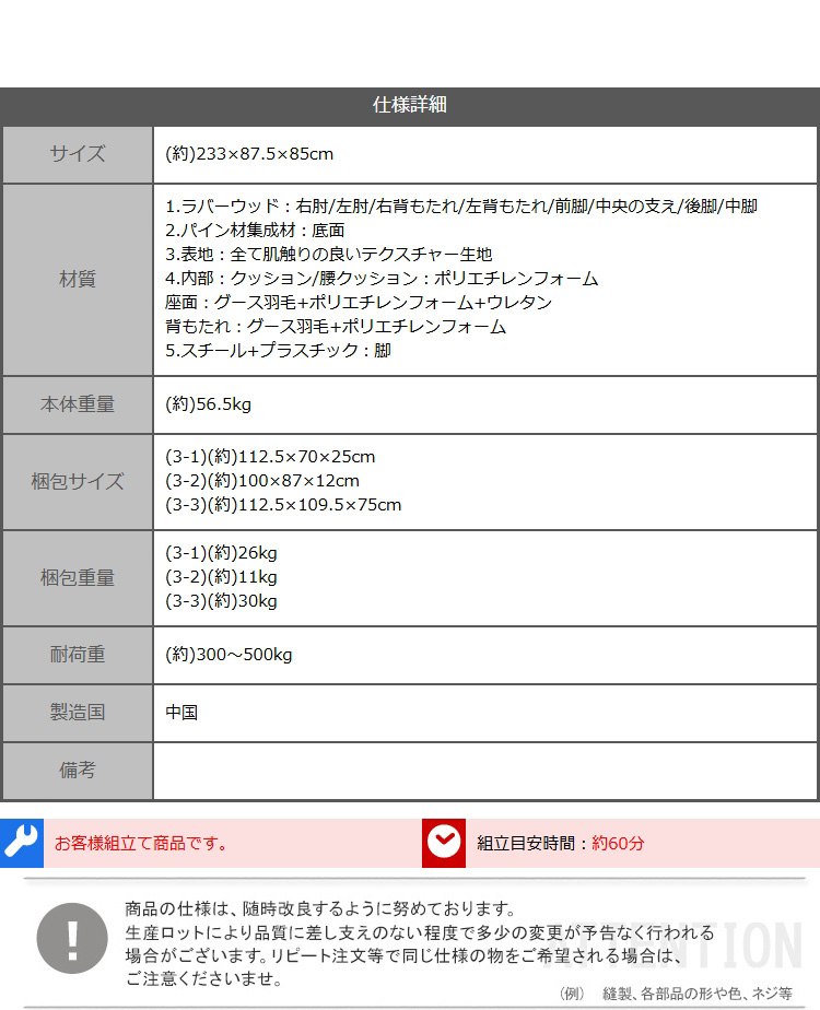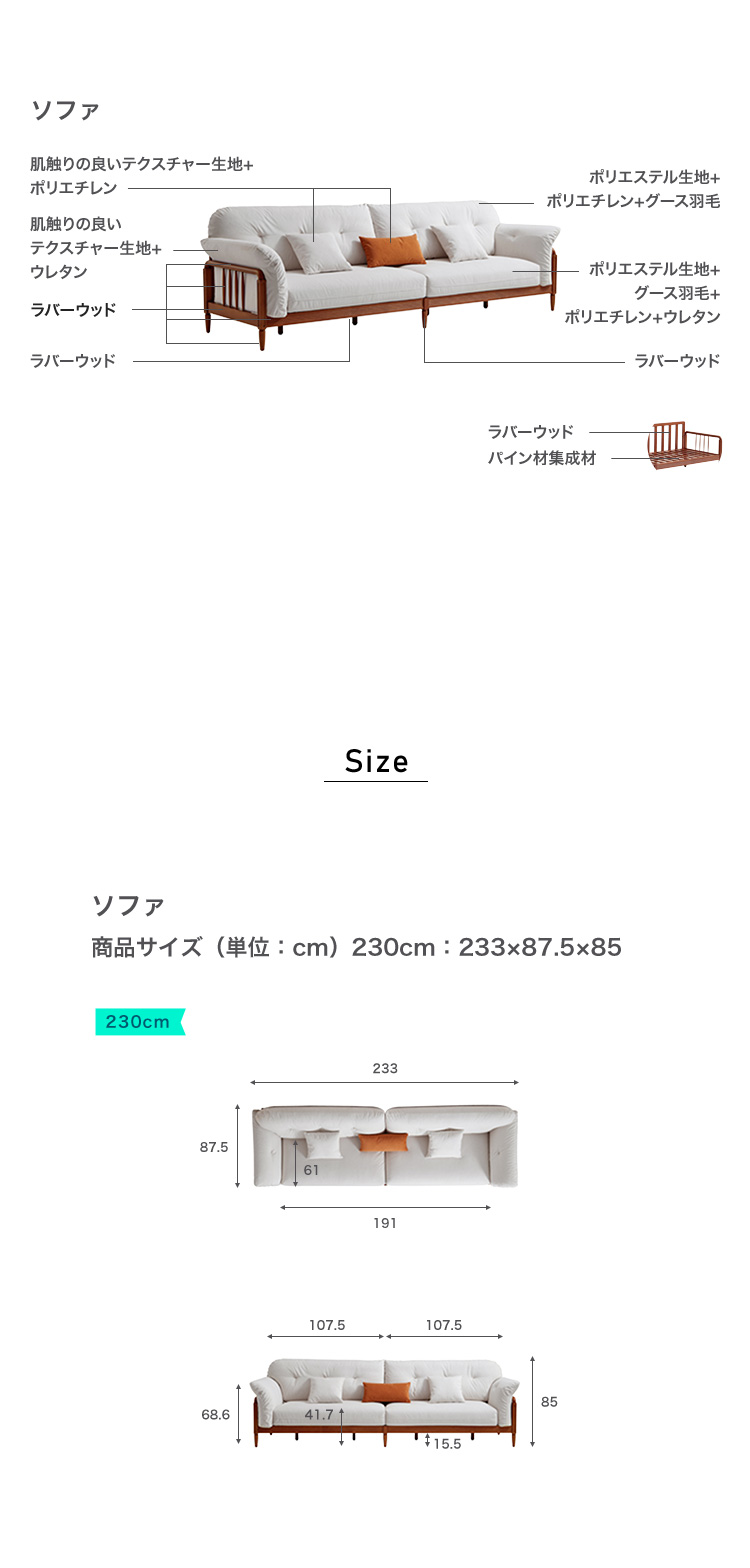 “フレンチレトロ無垢材ソファ 230cm” の口コミを投稿します