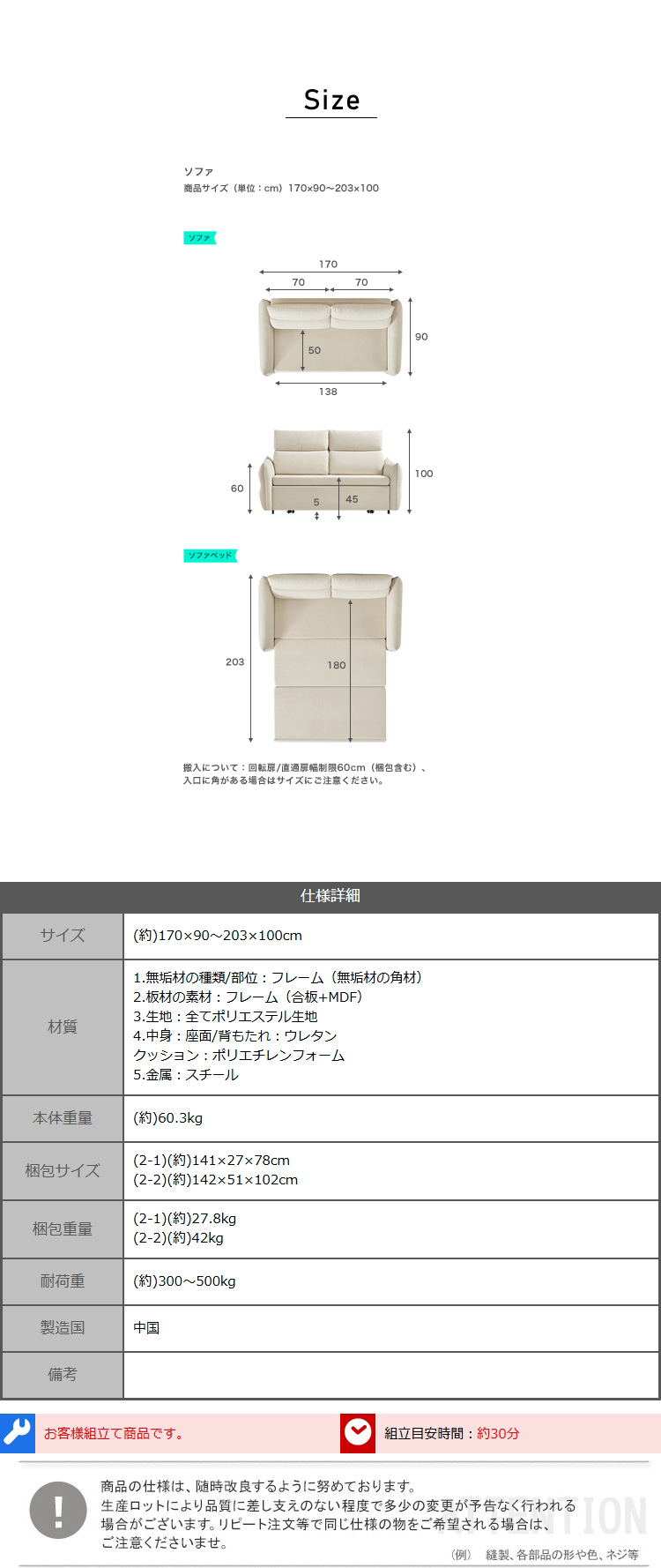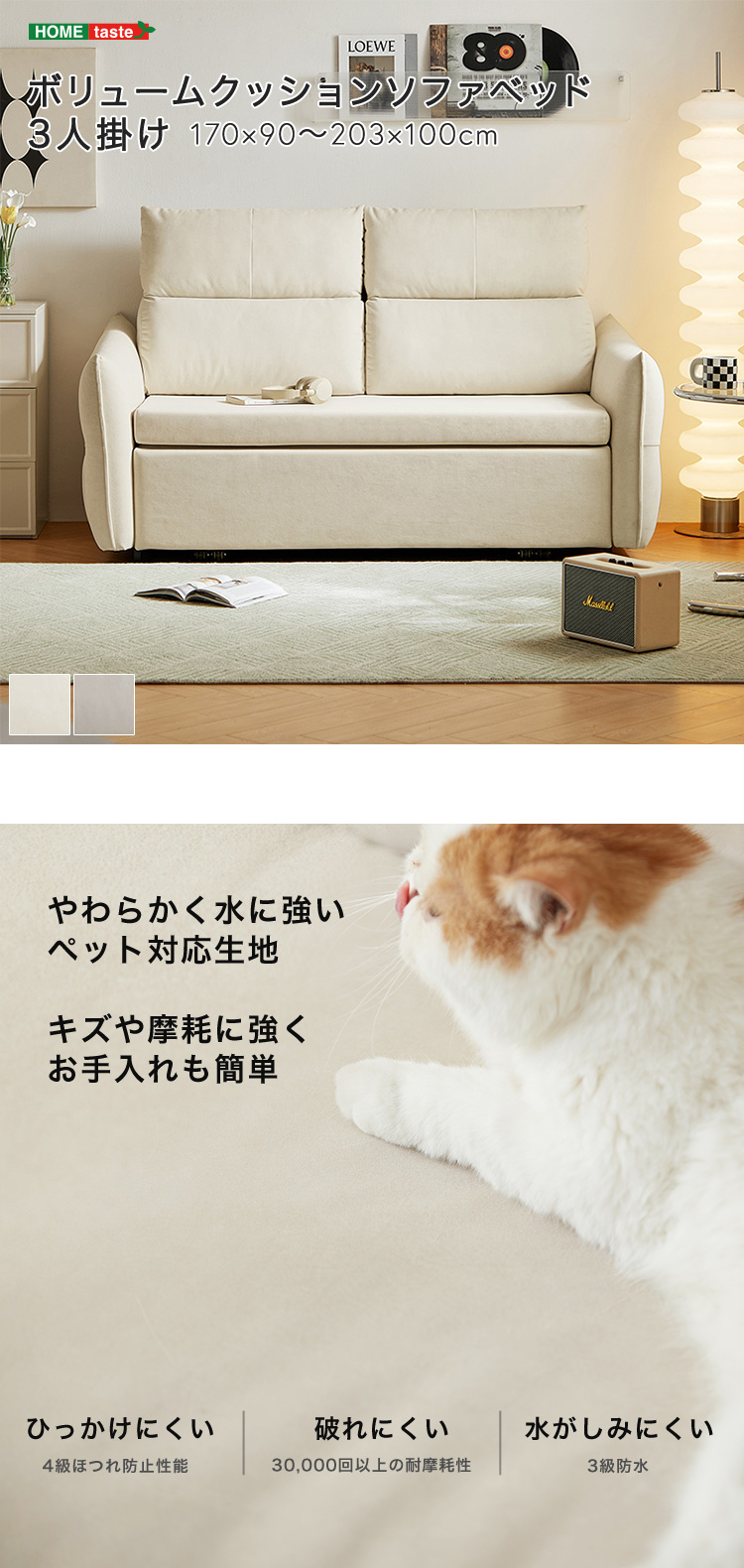 3人掛けソファベッド 防水生地 耐久性