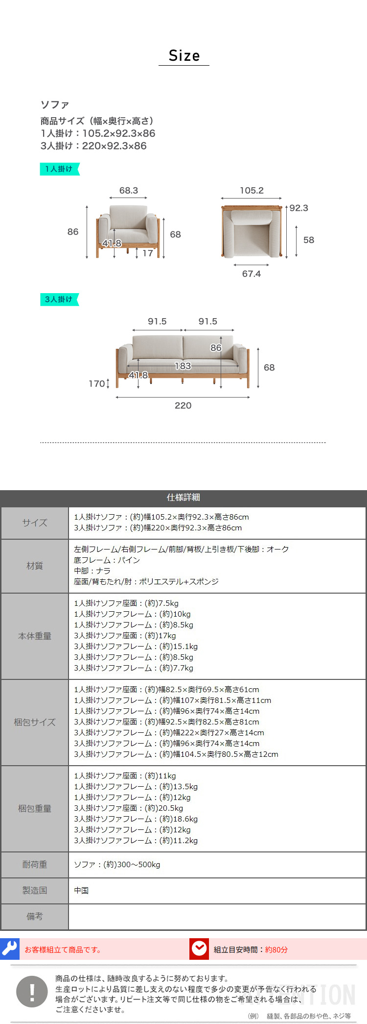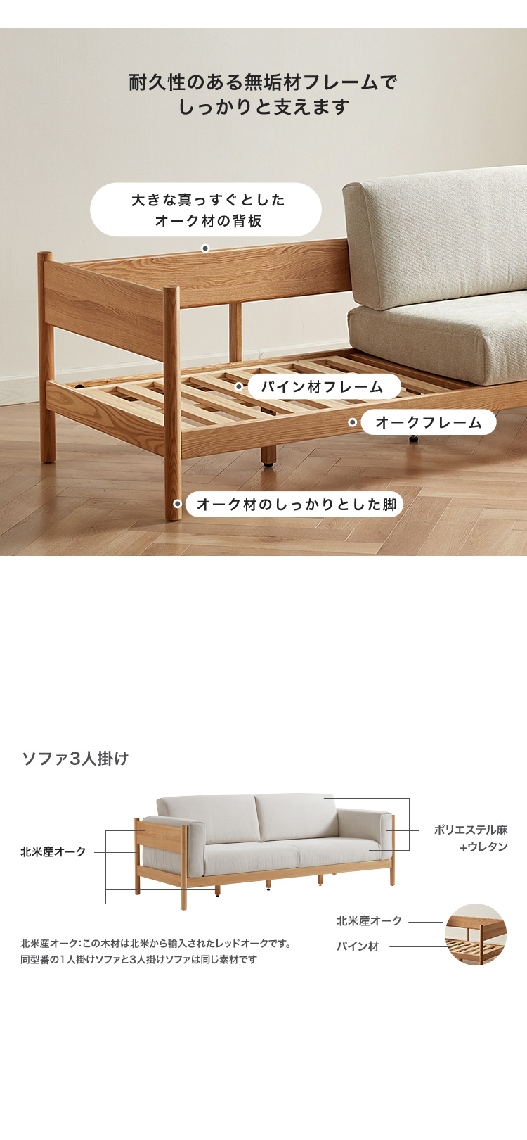 無垢材 ソファ 3人掛け 1人掛け