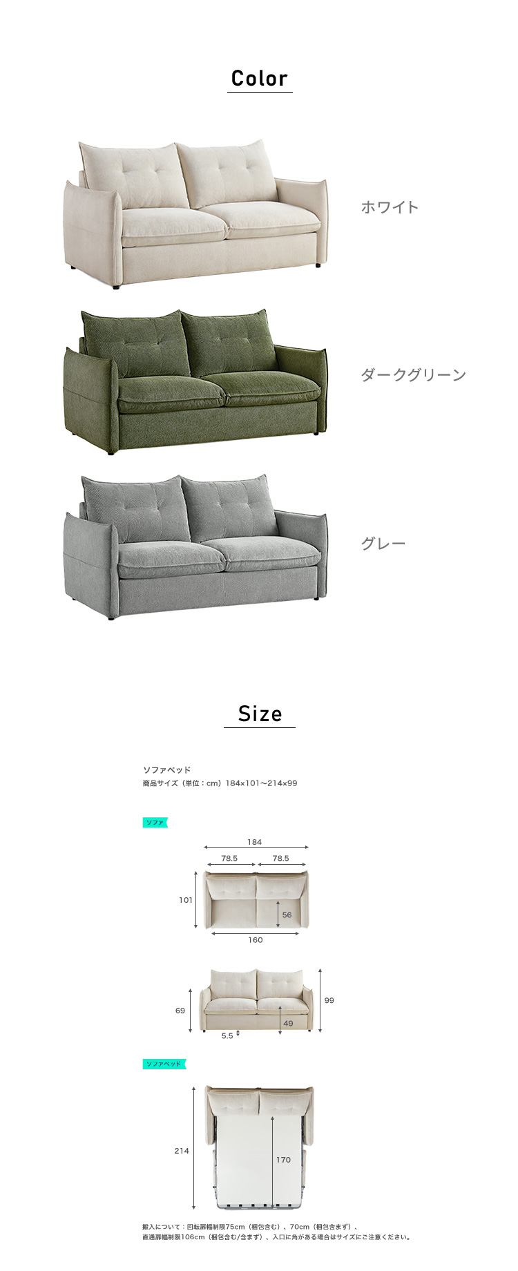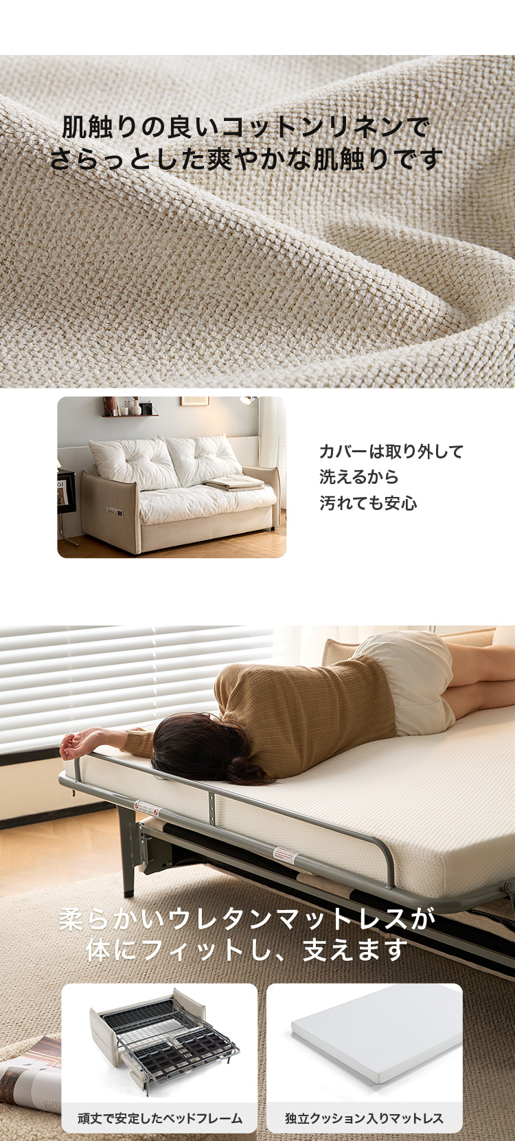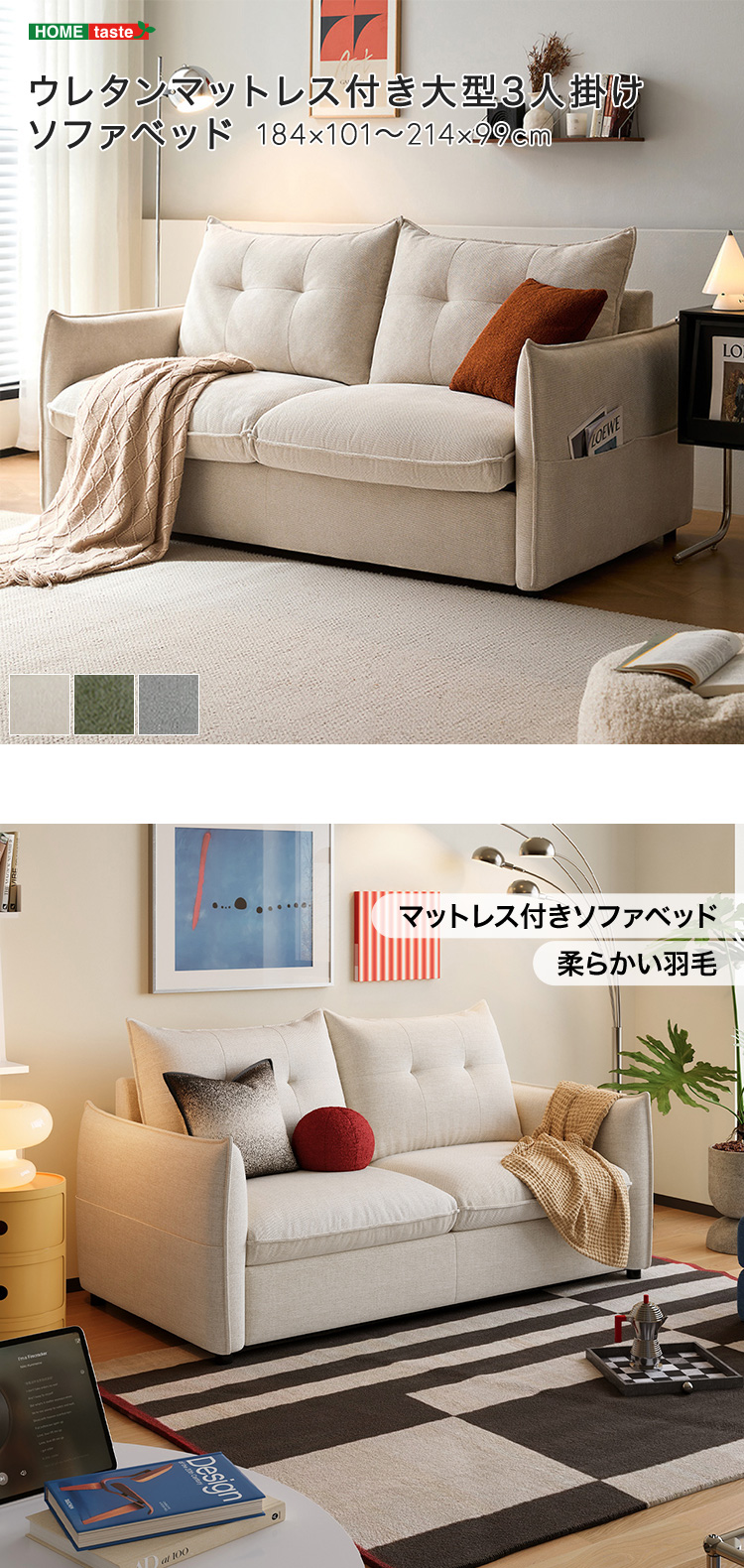 3人掛けソファベッド マットレス付き