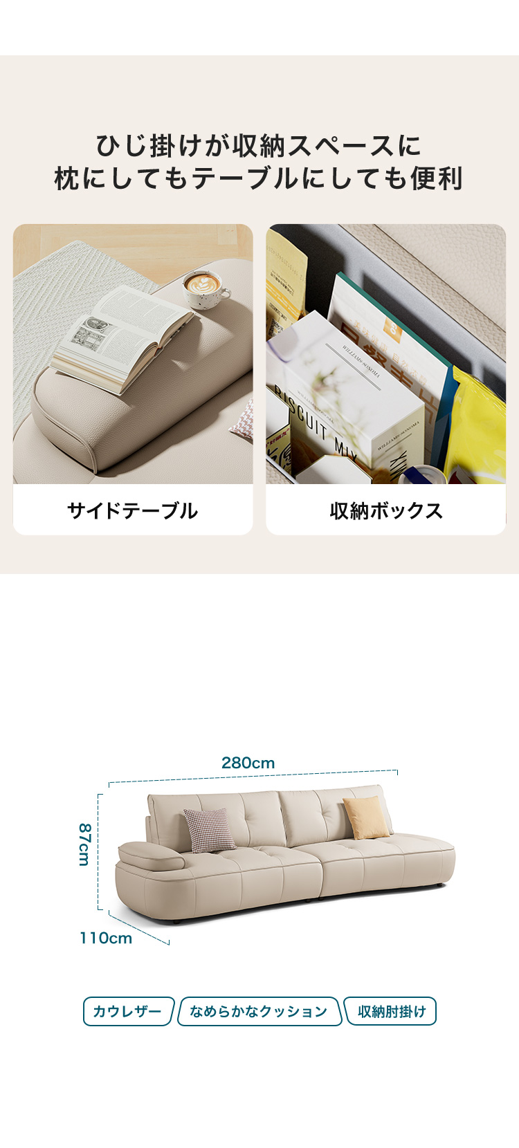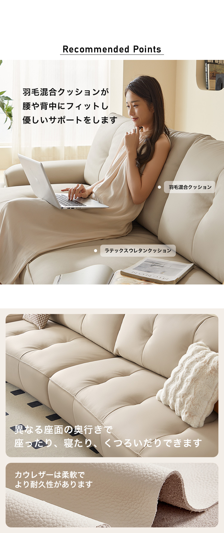 カウレザーソファ 4人掛け