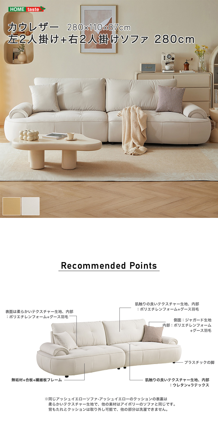 “カウレザー 左2人掛け+右2人掛けソファ 280cm” の口コミを投稿します