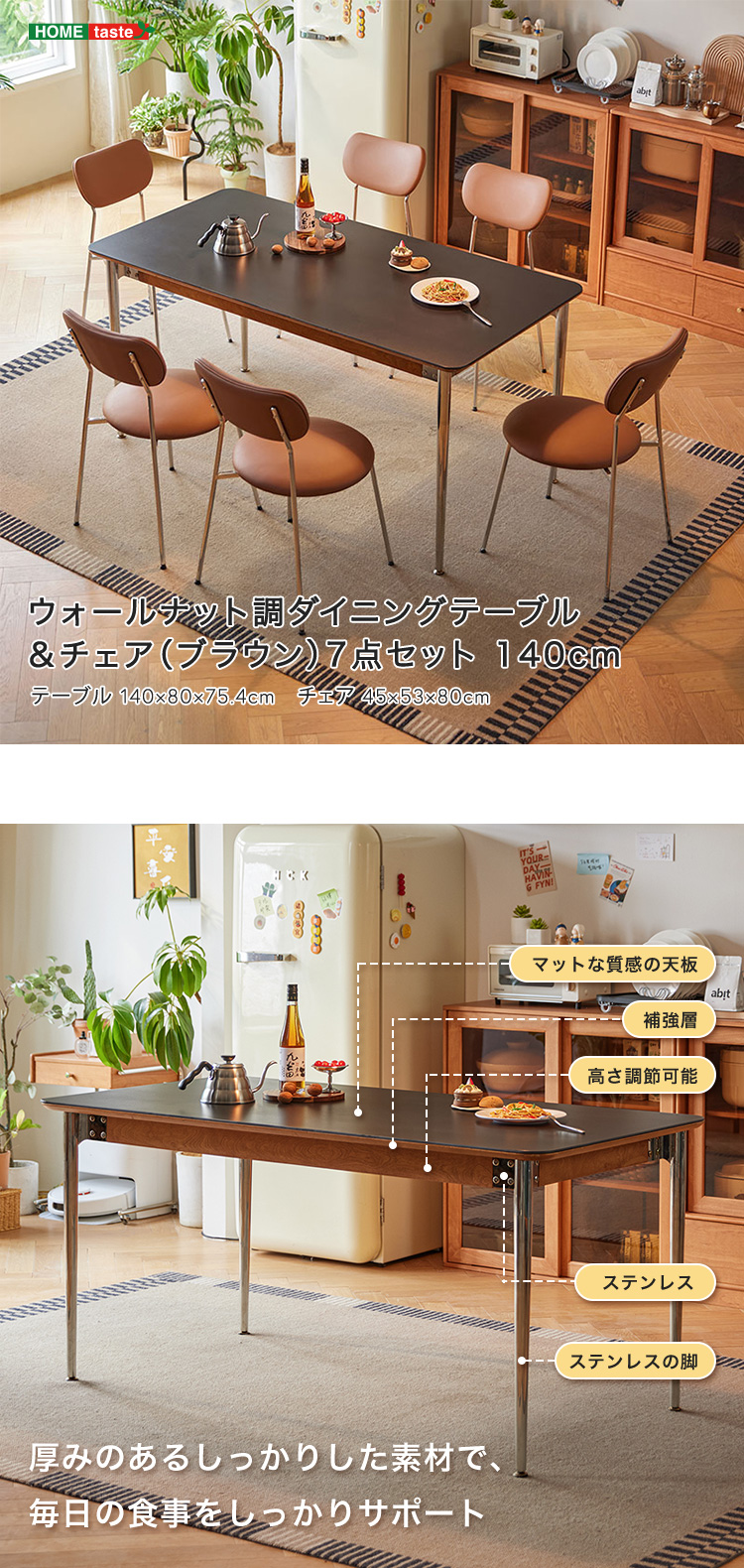 “ウォールナット調ダイニングテーブル&チェア(ブラウン)7点セット 140cm” の口コミを投稿します
