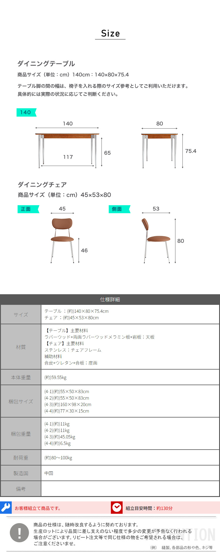 ダイニングテーブル 140cm ダイニングチェア 4