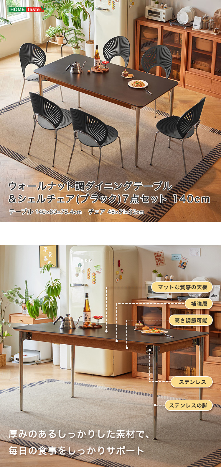 “ウォールナット調ダイニングテーブル&シェルチェア(ブラック)7点セット 140cm” の口コミを投稿します