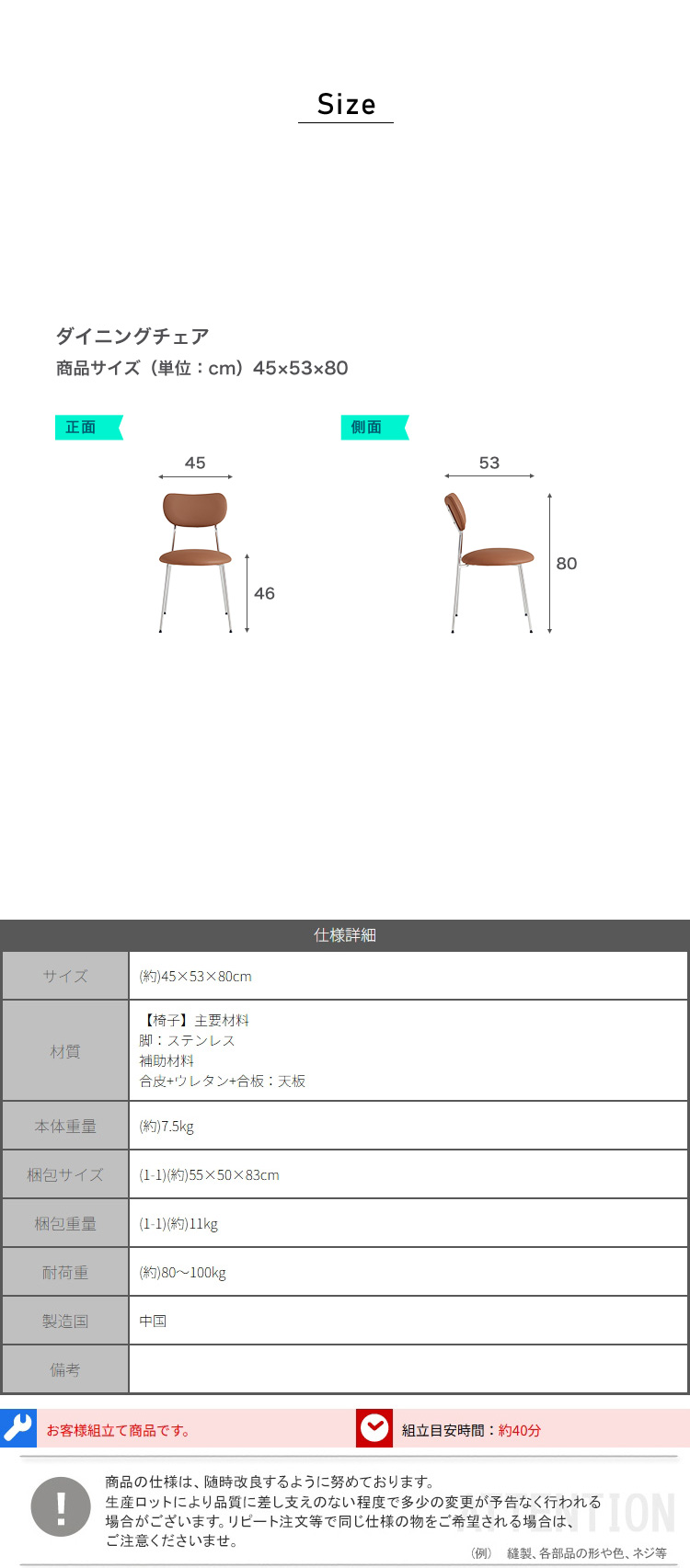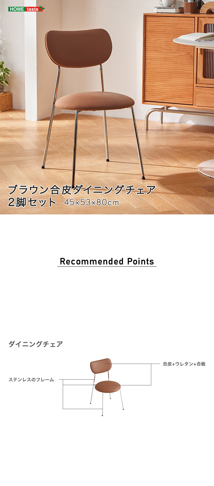 ダイニングチェア 2脚セット ブラウン 合皮