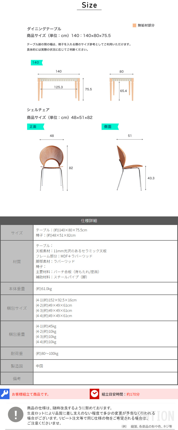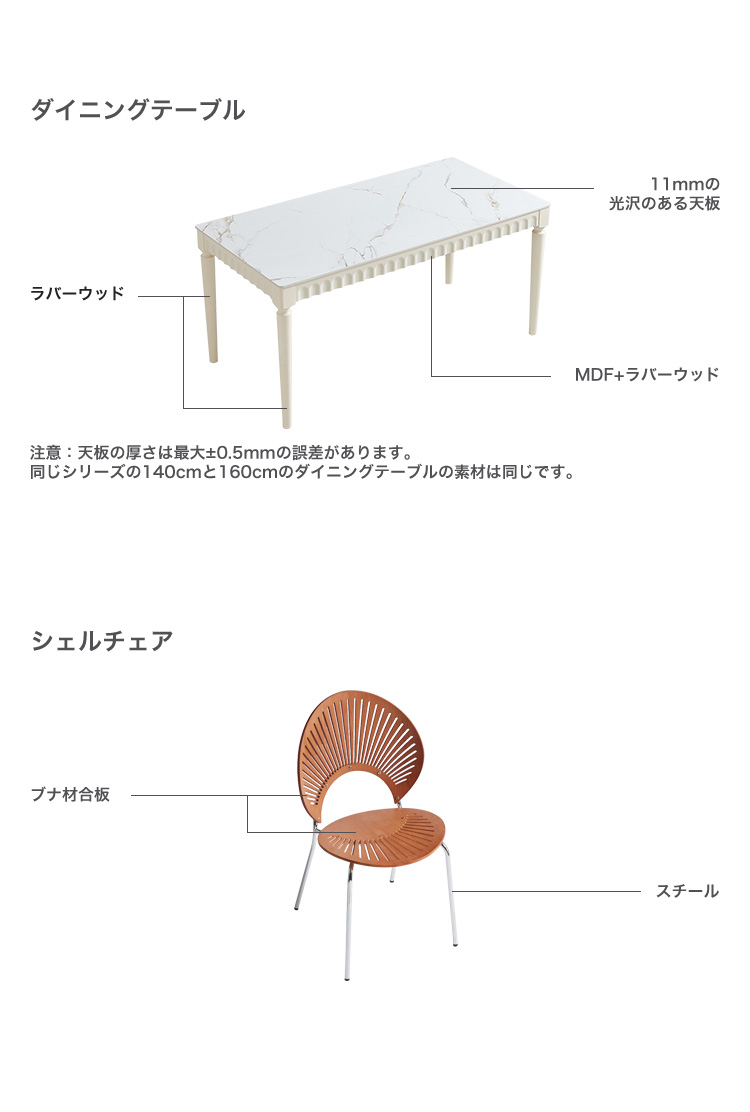 ダイニング7点セット 140cm シェルチェア セラミック おしゃれ