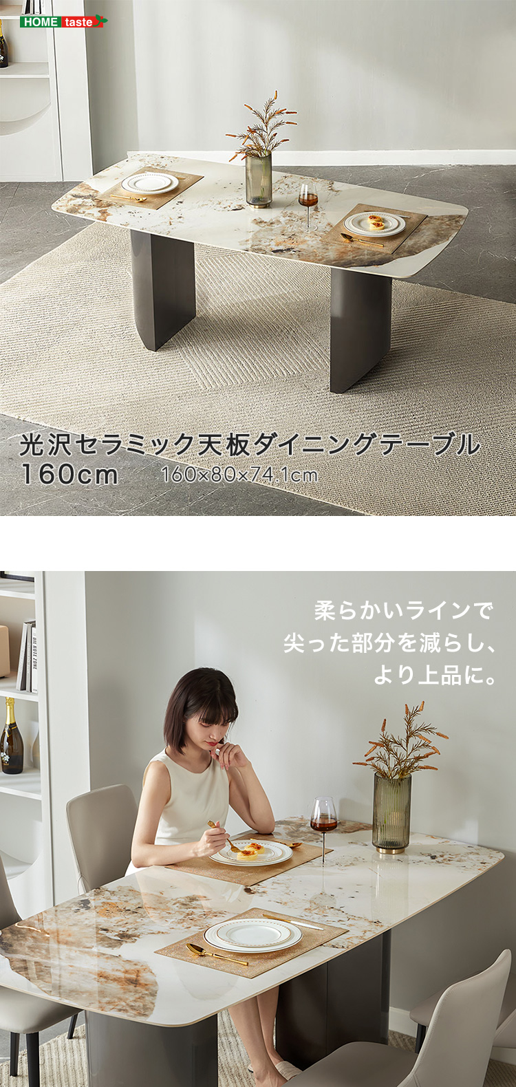 セラミック天板 光沢 高級感 ダイニングテーブル